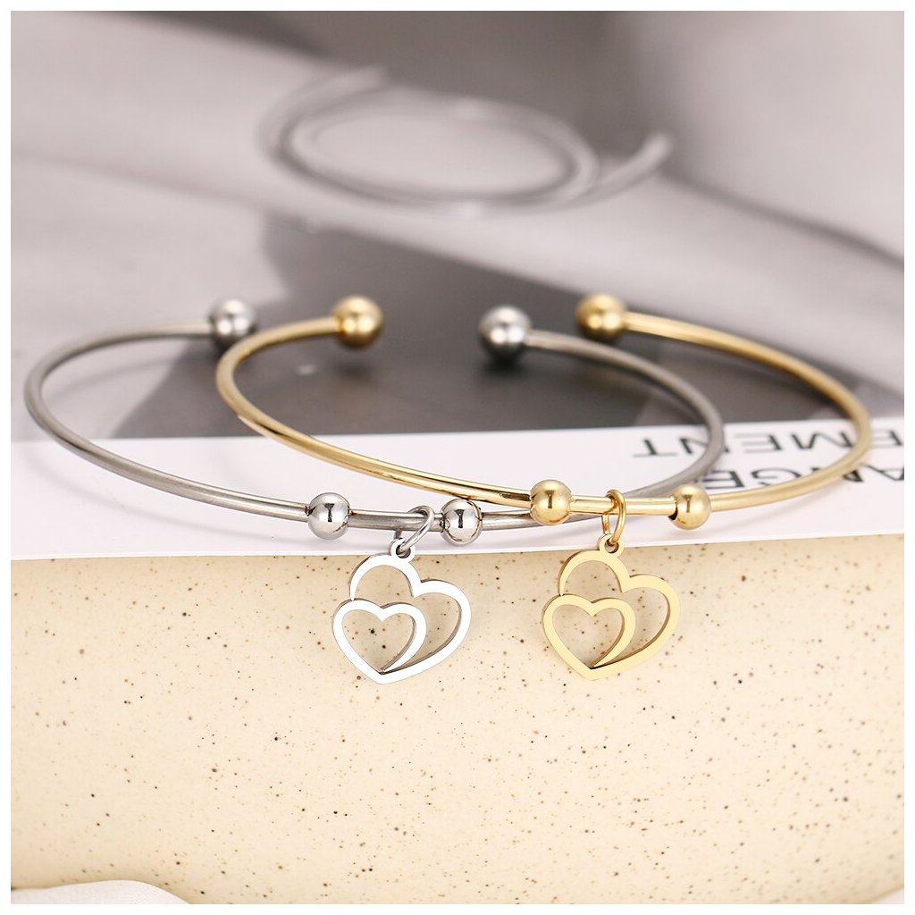 Otevřený náramek - srdce Deux, stříbrná ocel