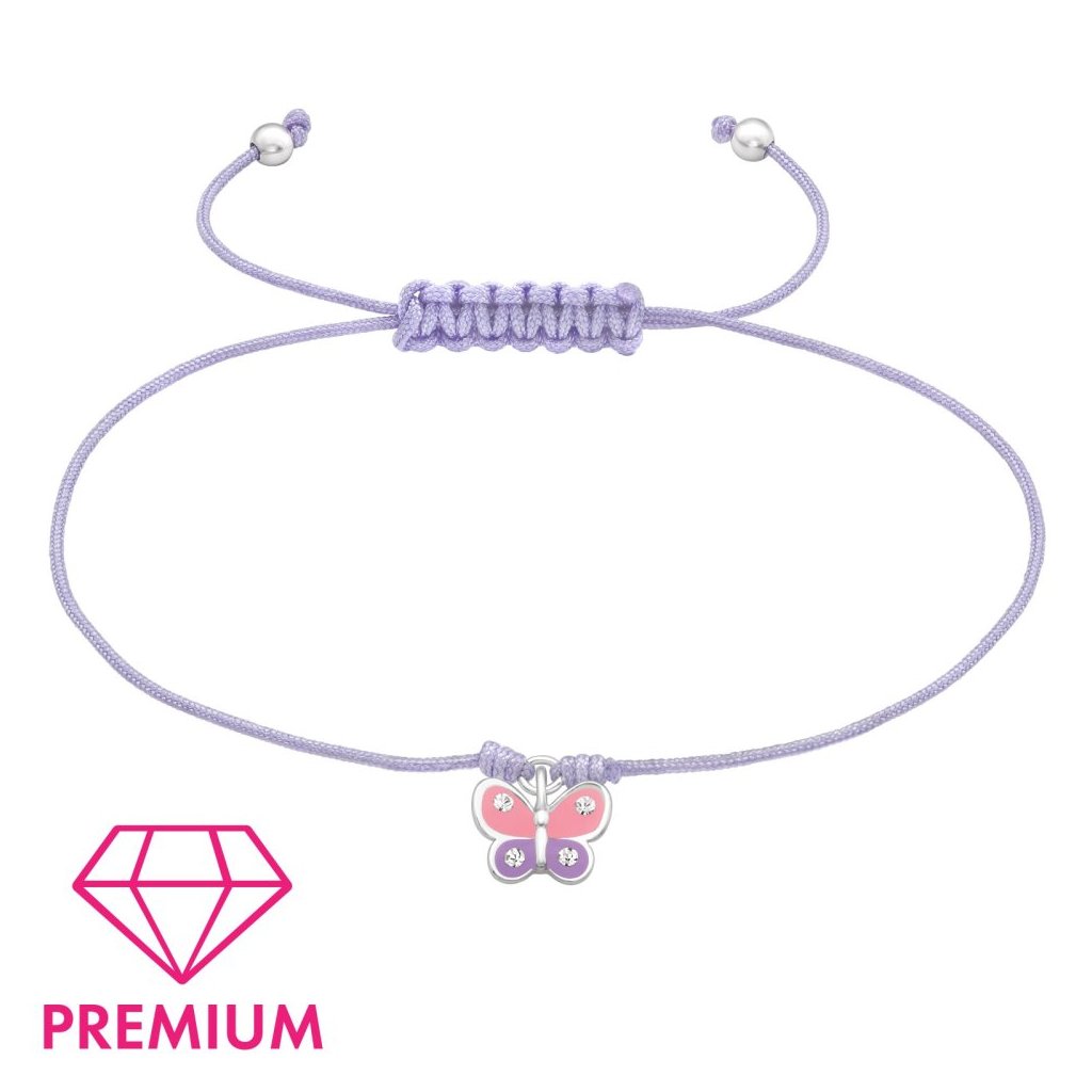 Provázkový náramek fialovo-růžový Motýlek
