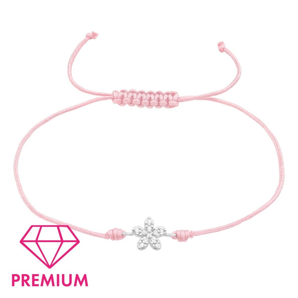 Provázkový růžový náramek Květina se zirkony (CZ)