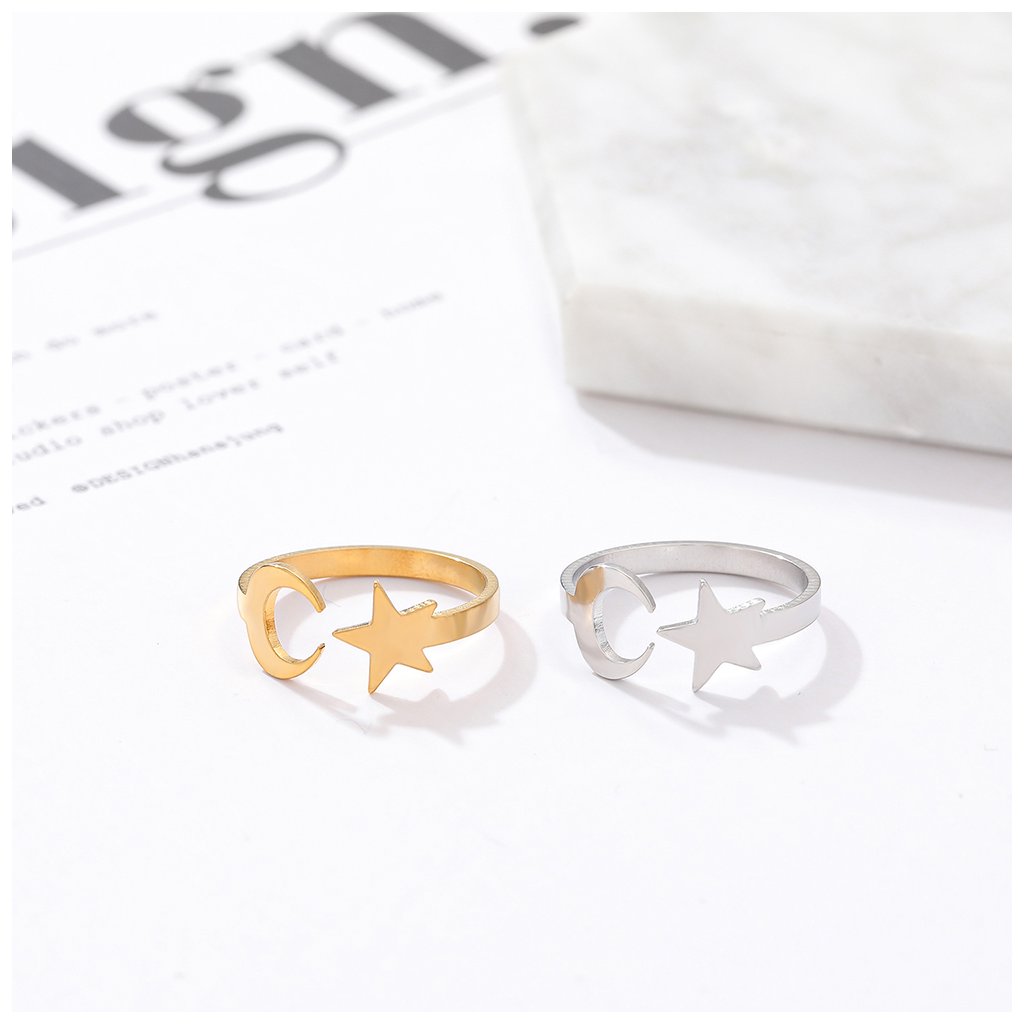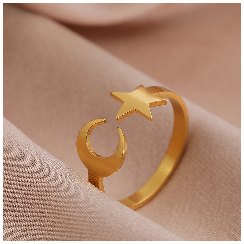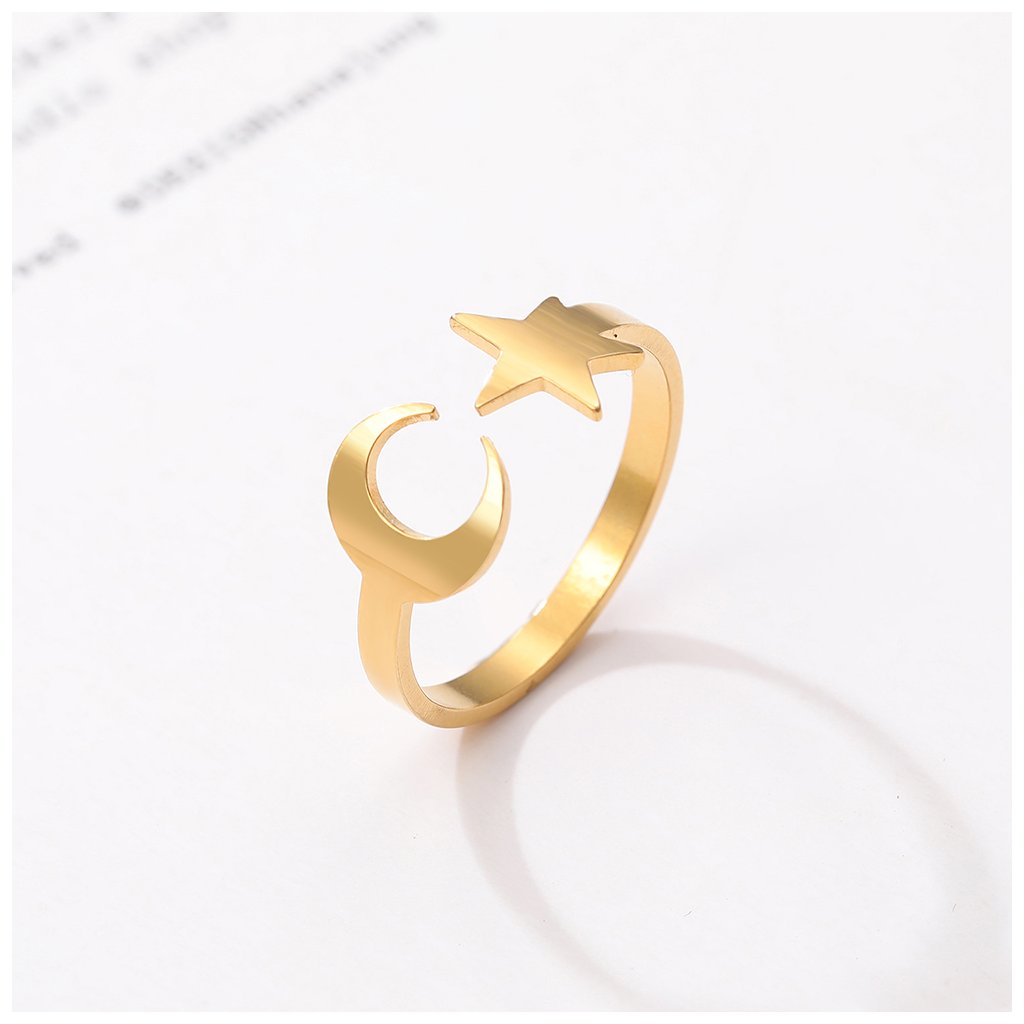 Prsten s nastavitelnou velikostí - měsíc a hvězda, zlatá ocel