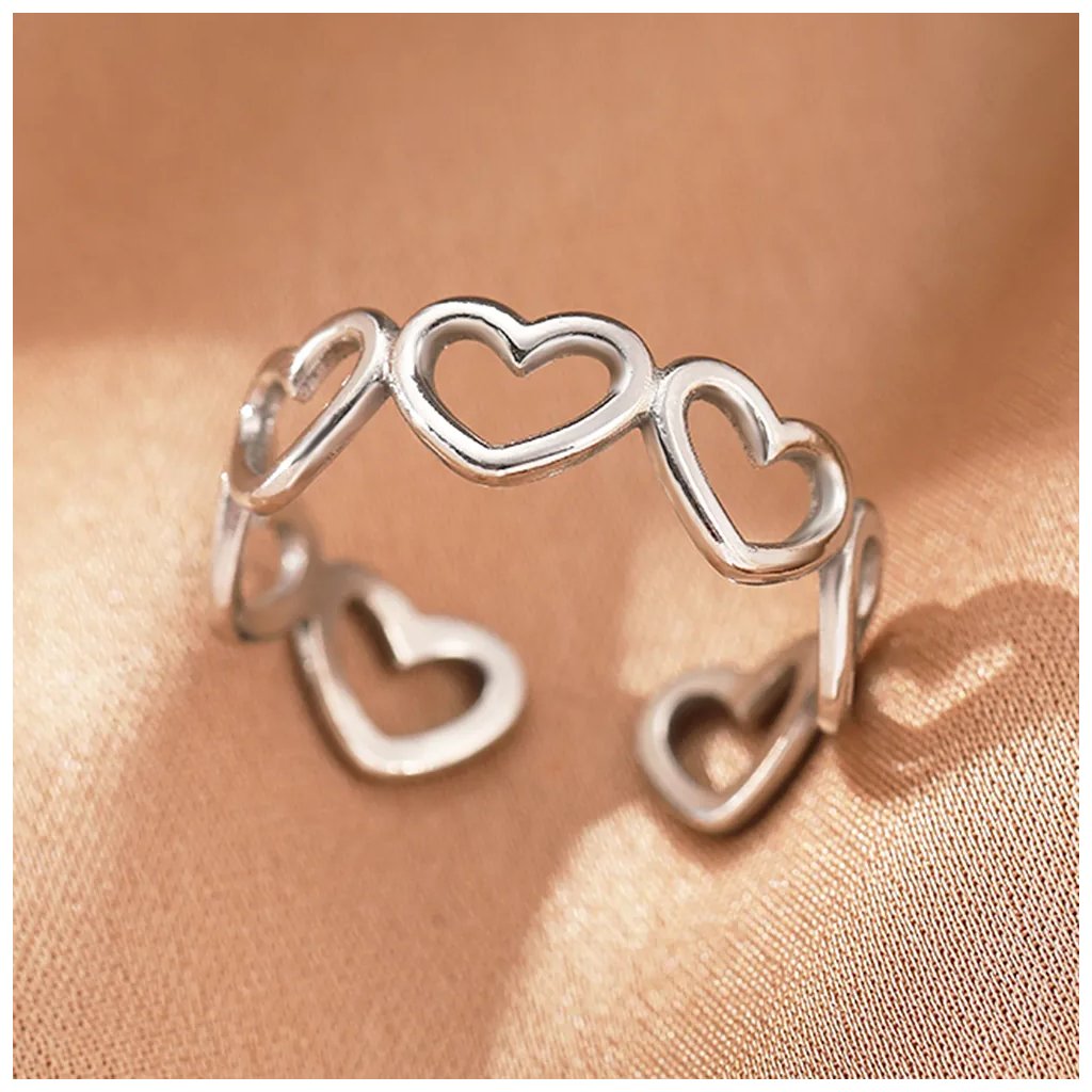Prsten s nastavitelnou velikostí - srdce Astrid, stříbrná ocel