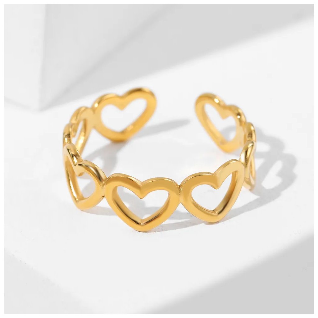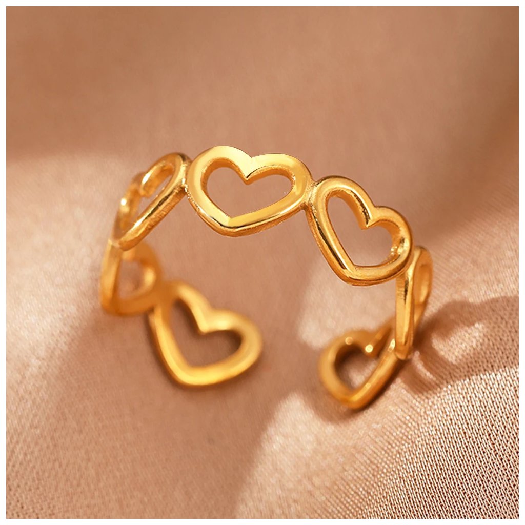 Prsten s nastavitelnou velikostí - srdce Astrid, zlatá ocel