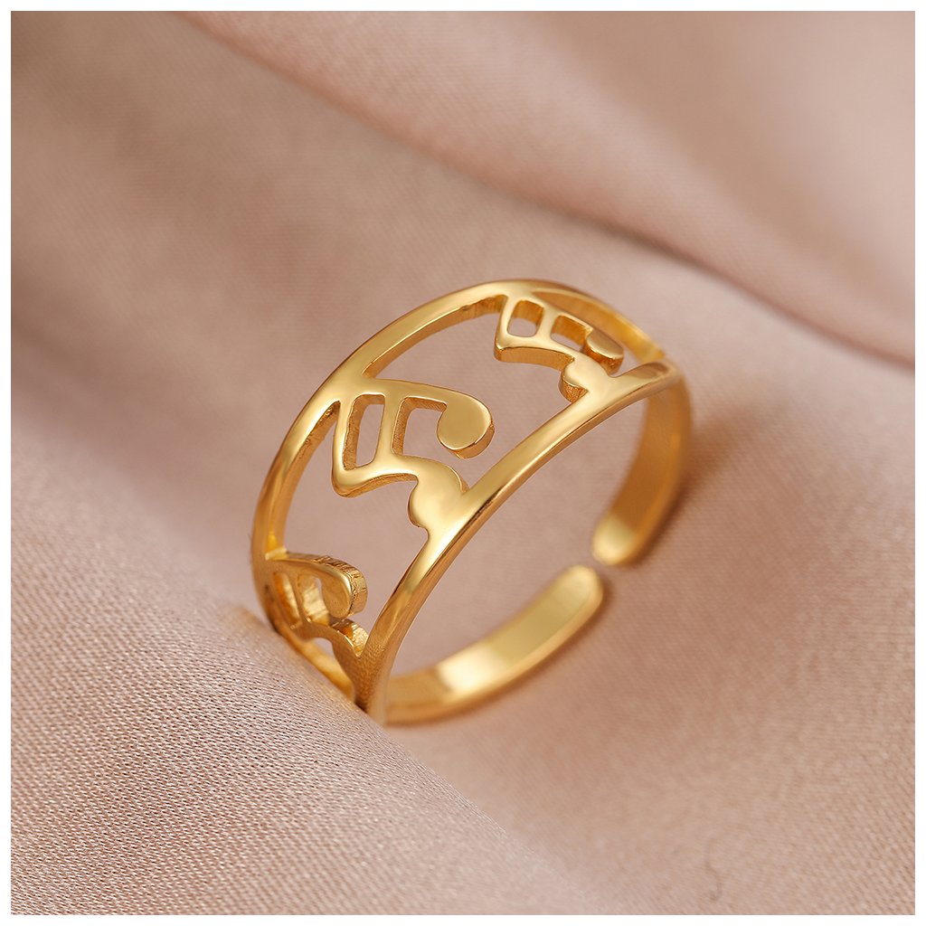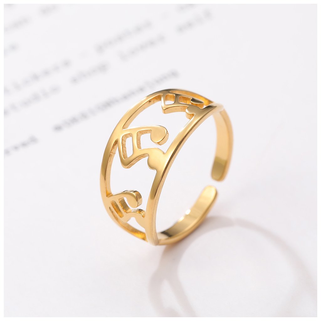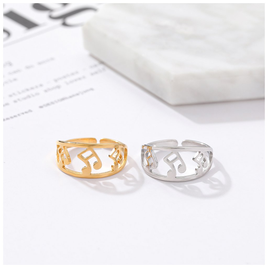 Prsten s nastavitelnou velikostí - tři hudební noty, zlatá ocel