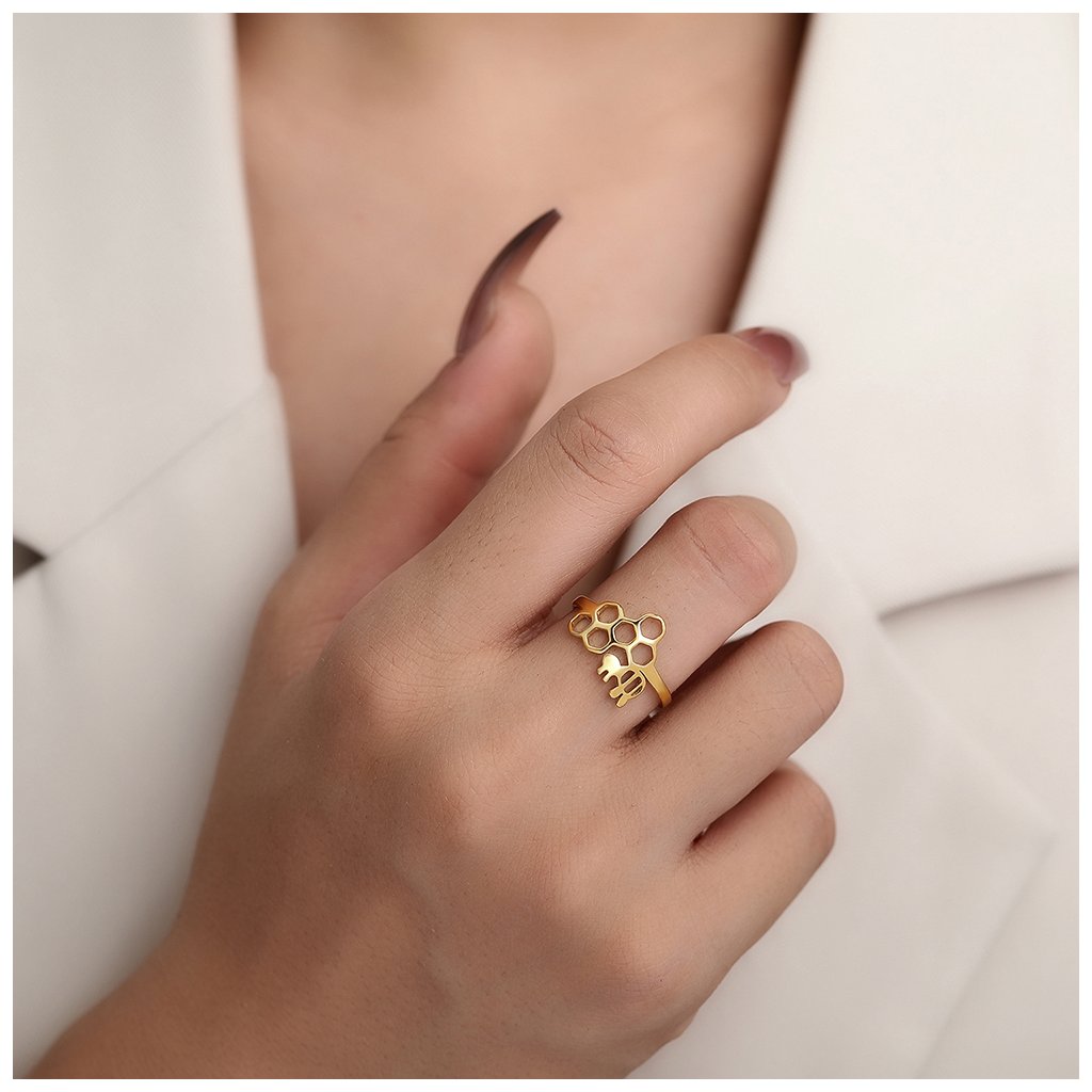 Prsten - Včela Oz a včelí plást, zlatá ocel