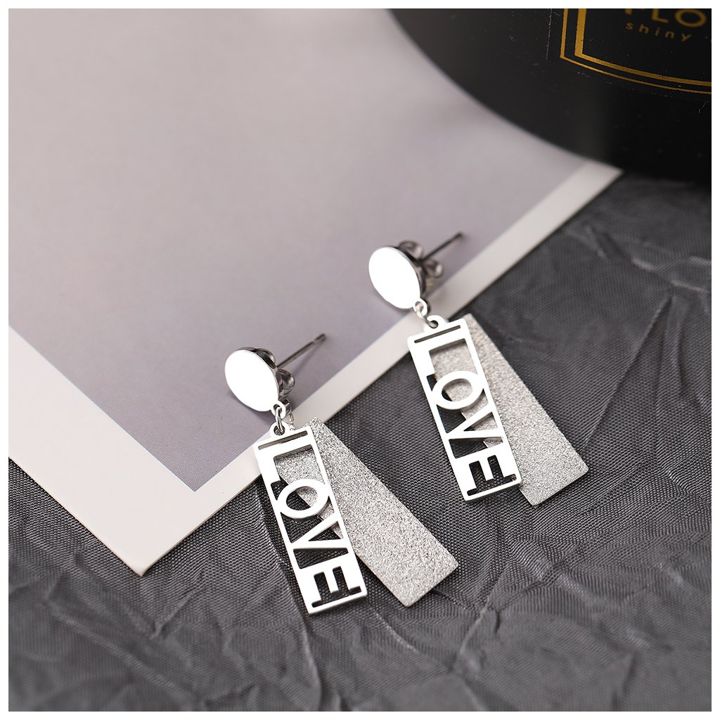Puzetové náušnice - kolečko s nápisem LOVE, stříbrná ocel
