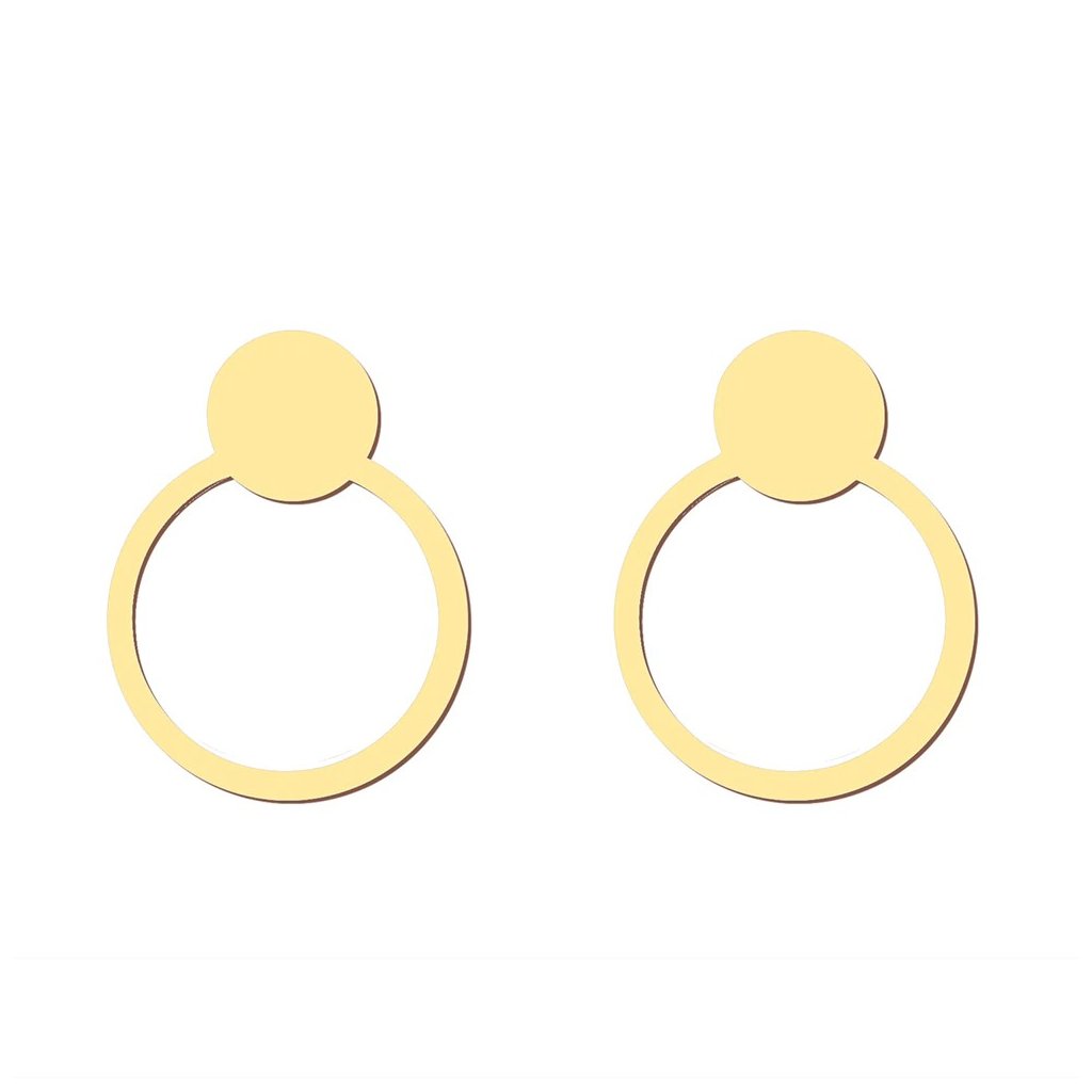 Puzetové náušnice - kroužek s kolečkem, zlatá ocel