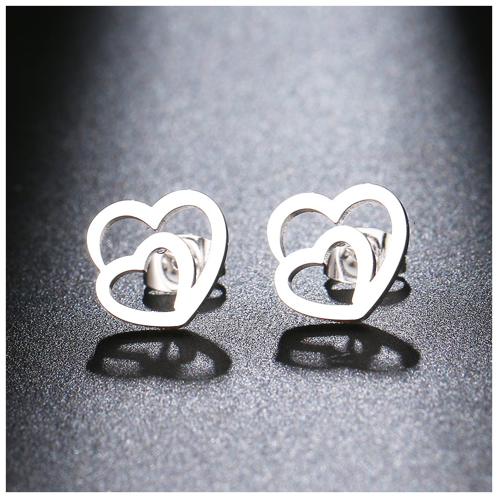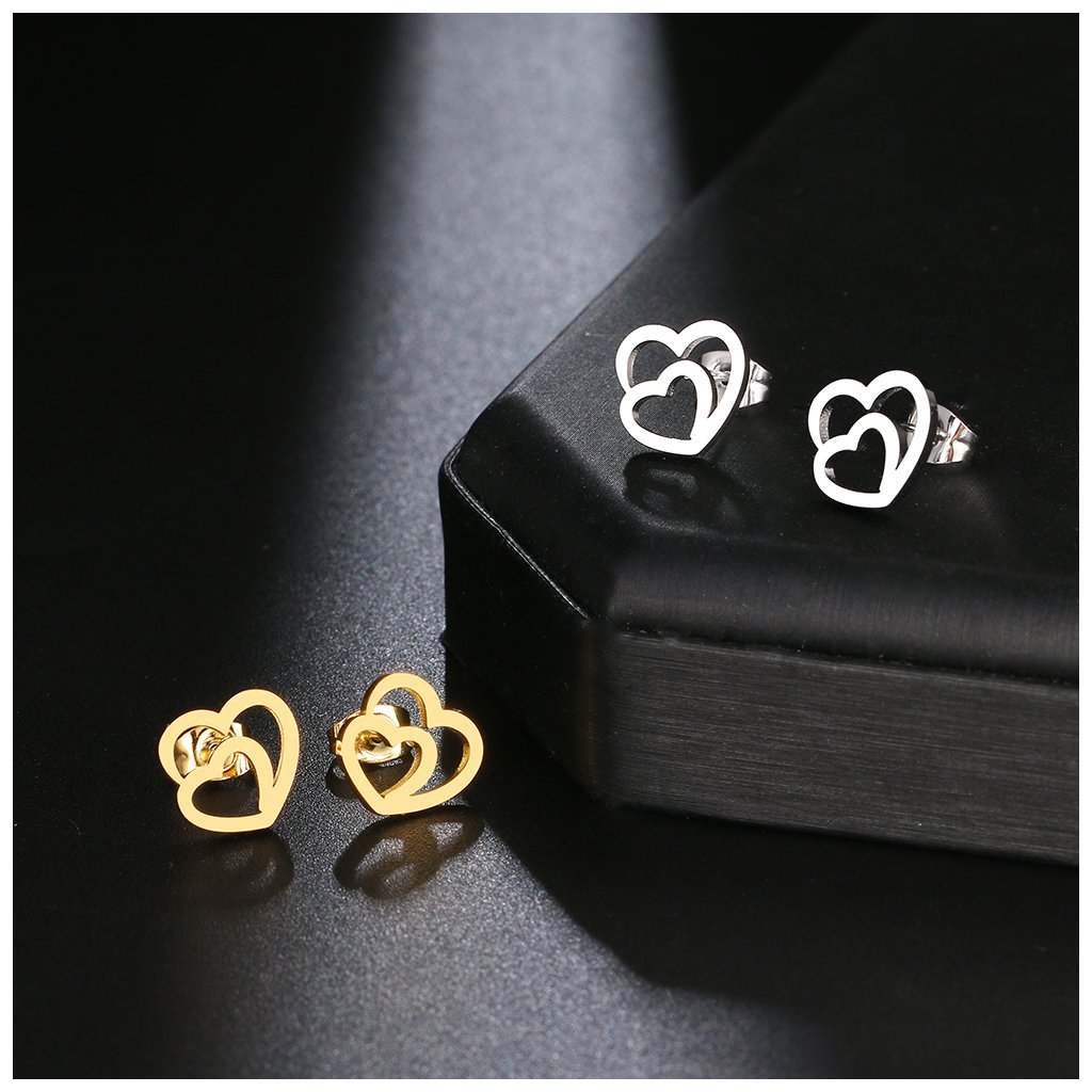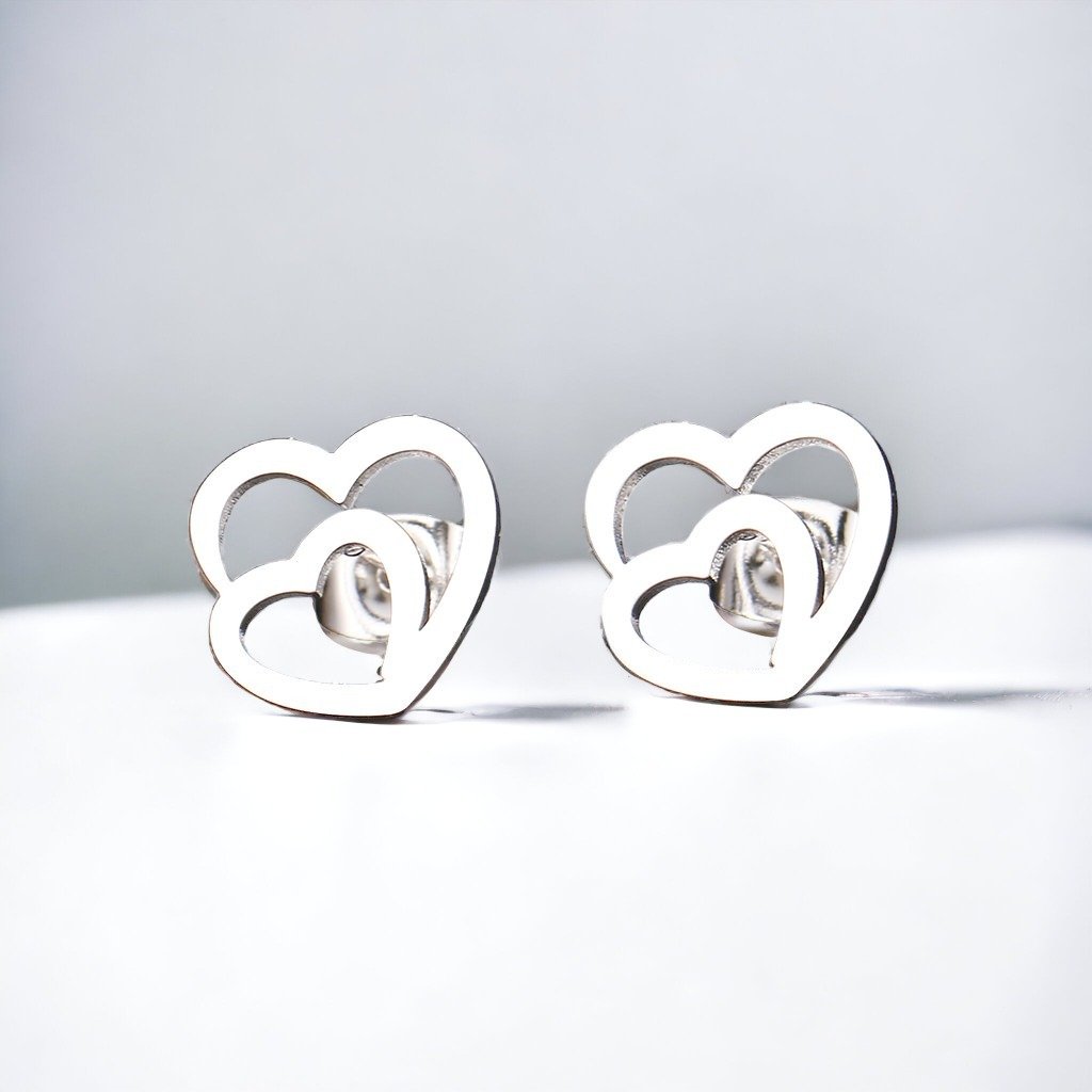 Puzetové náušnice - srdce Deux, stříbrná ocel