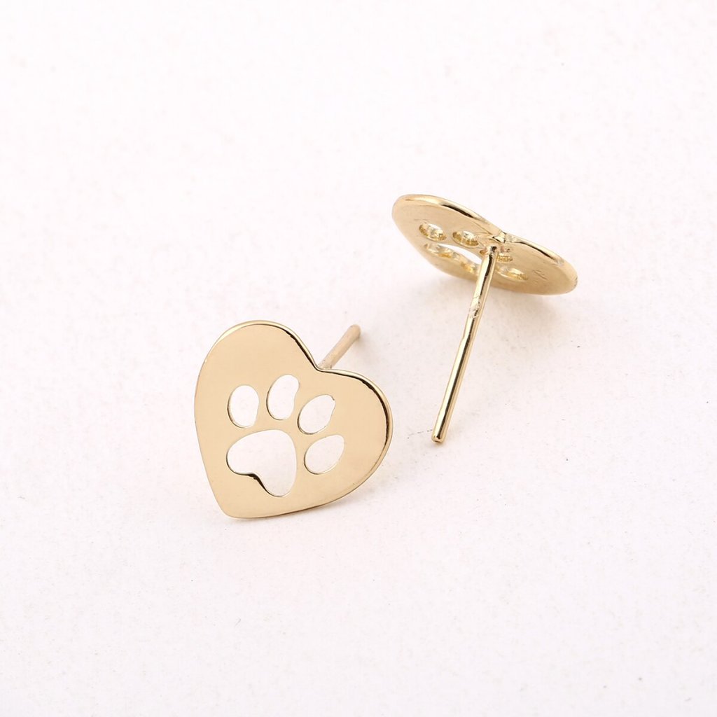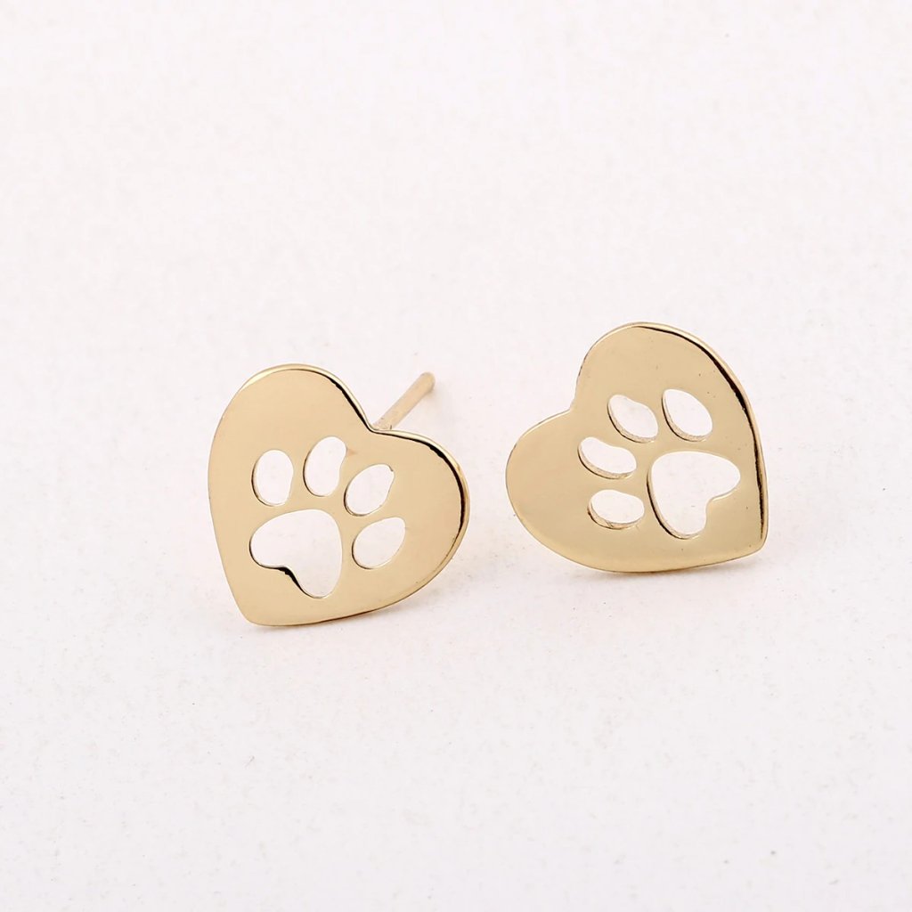 Puzetové náušnice - srdce s psími tlapkami, zlatá ocel