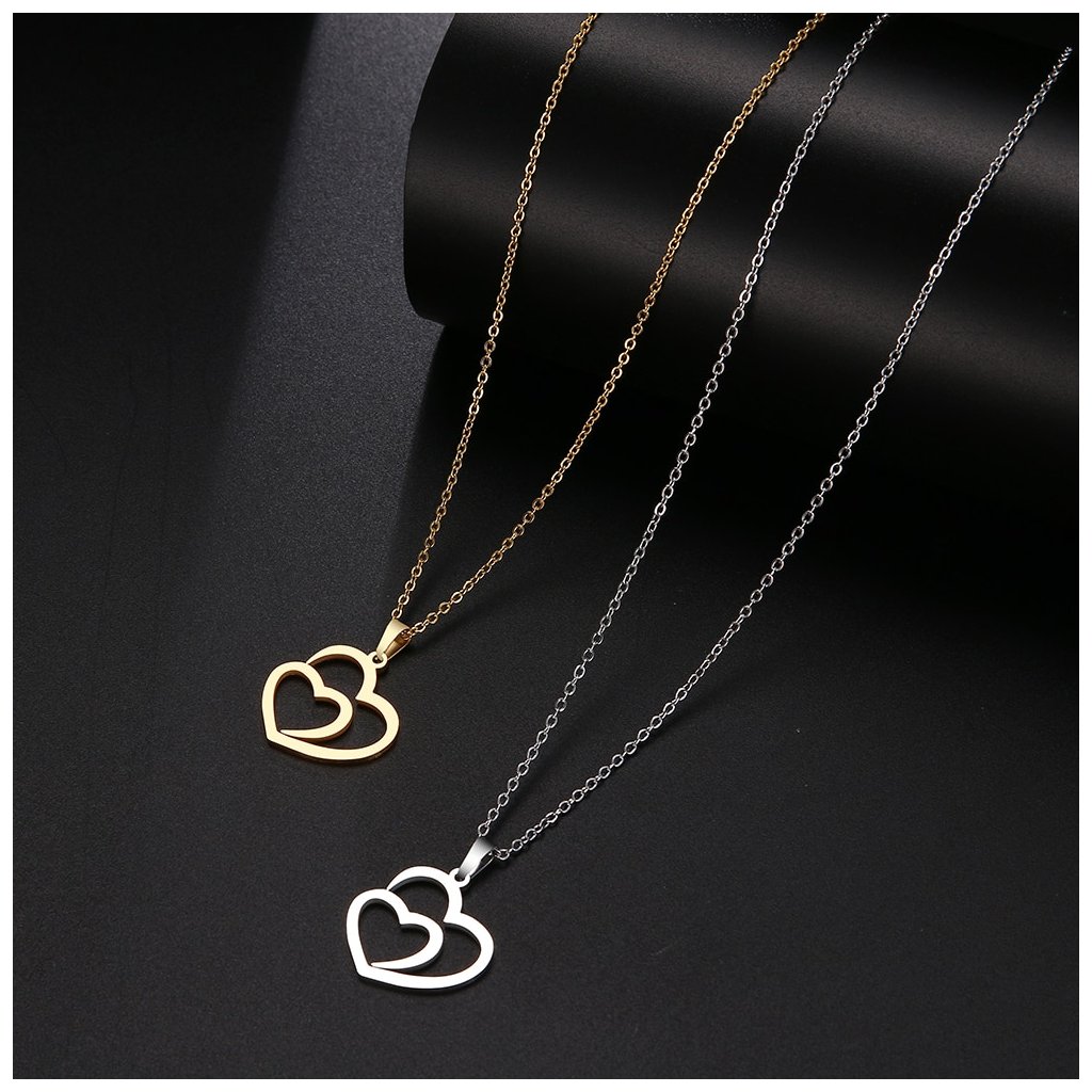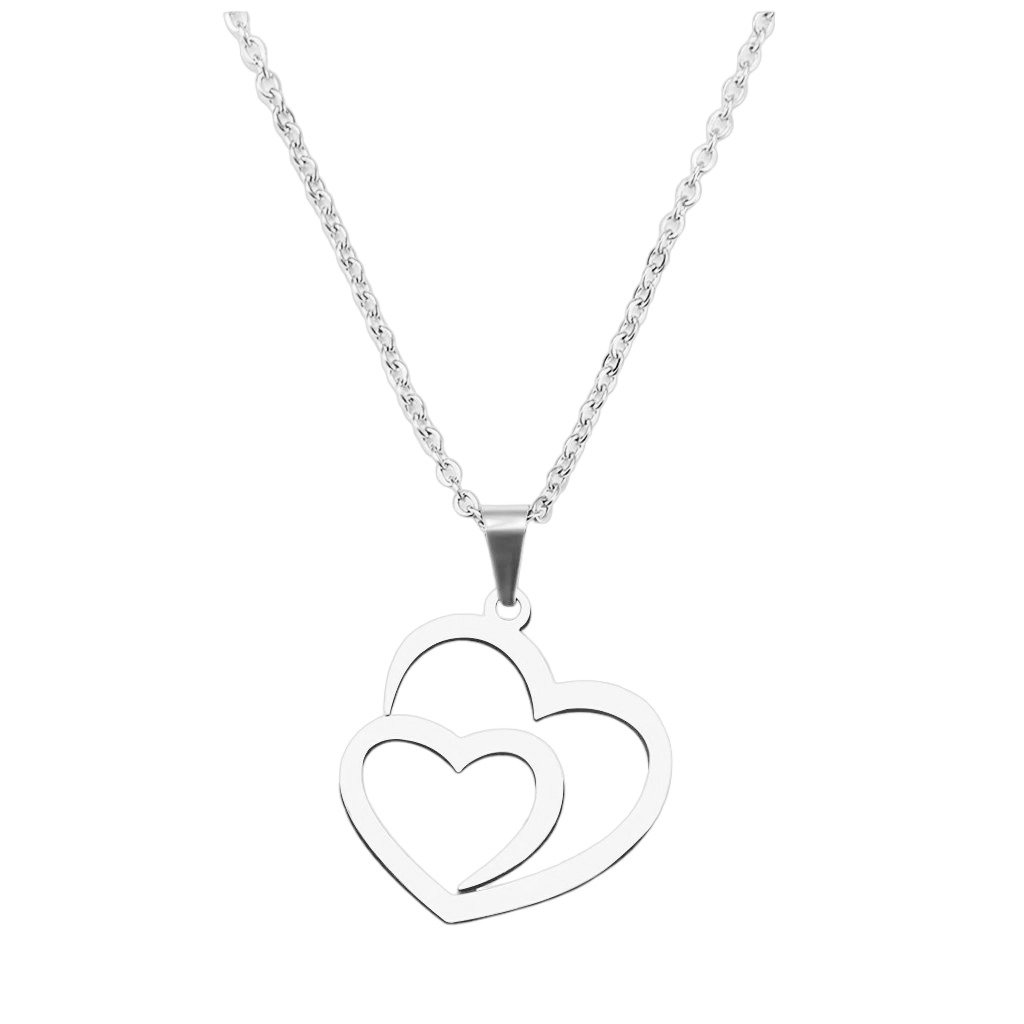 Řetízek s přívěskem - dvojité srdce Deux, stříbrná ocel