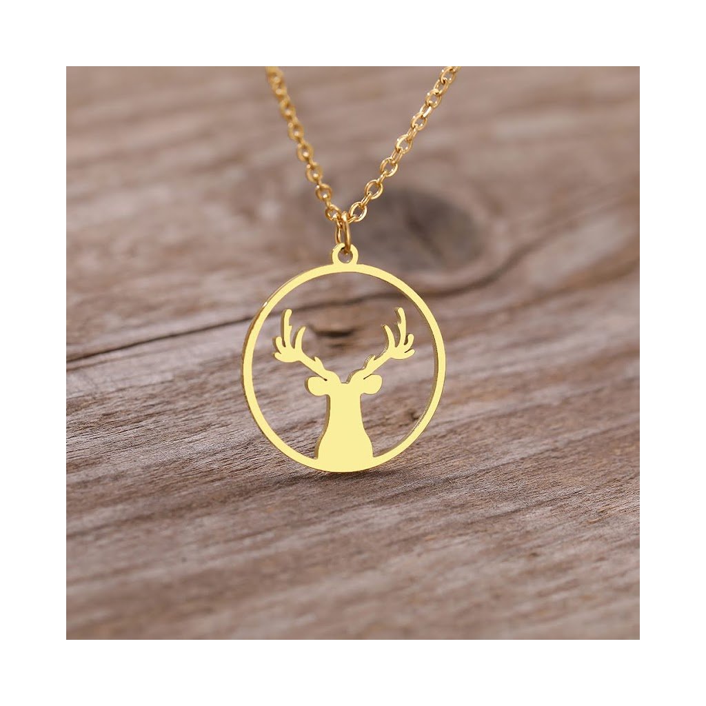 Řetízek s přívěskem - jelen v kruhu, zlatá ocel