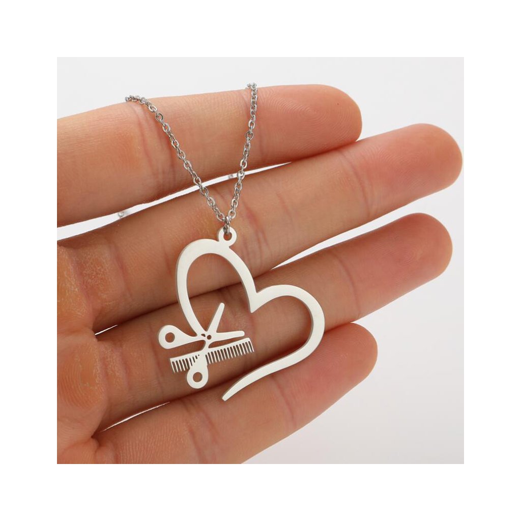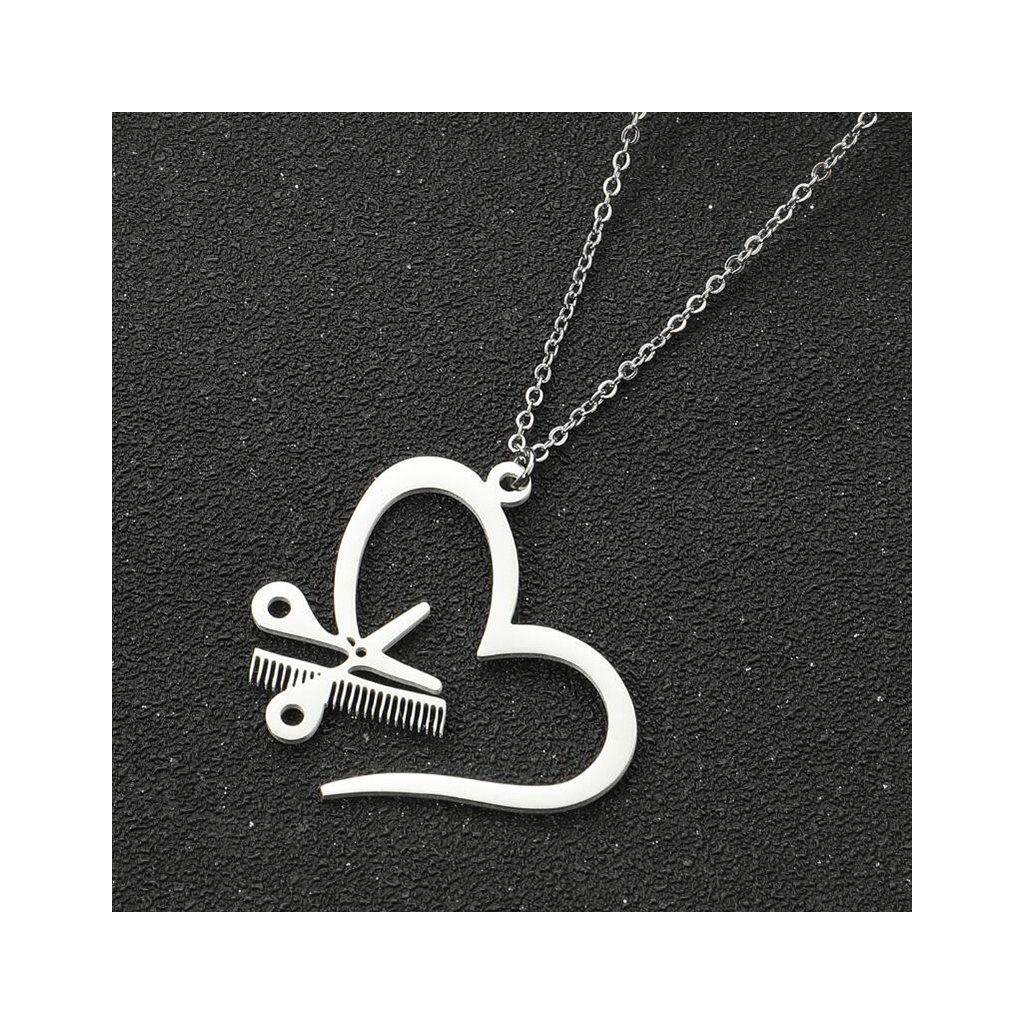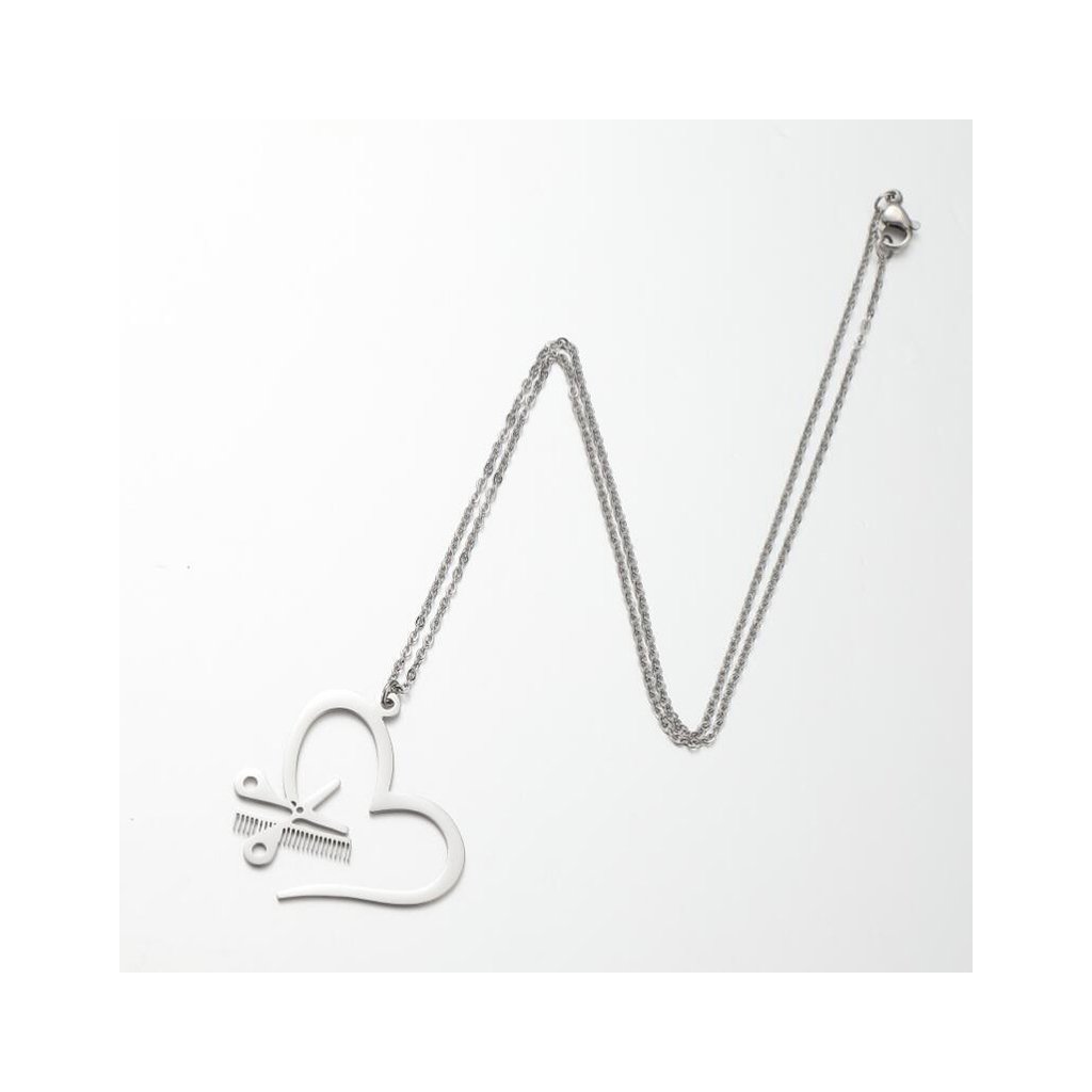 Řetízek s přívěskem - kadeřnické srdce, stříbrná ocel