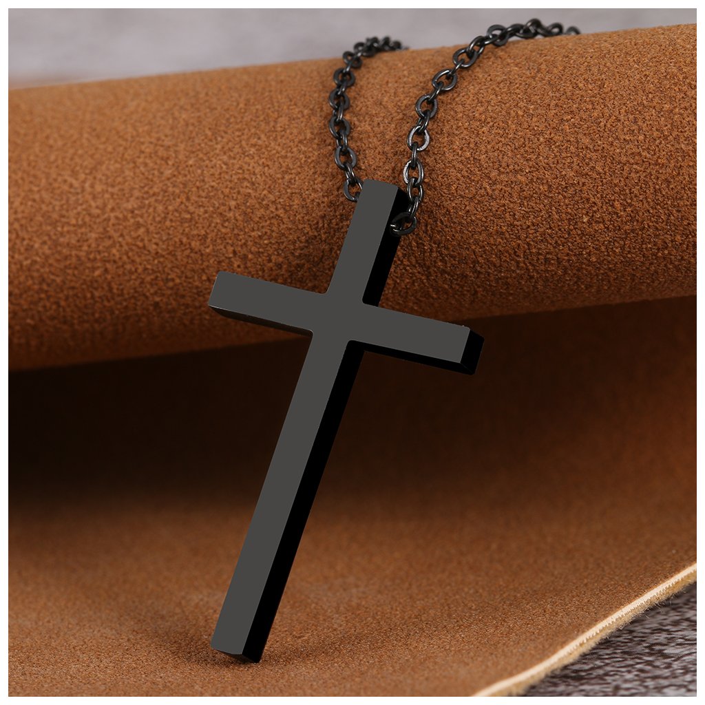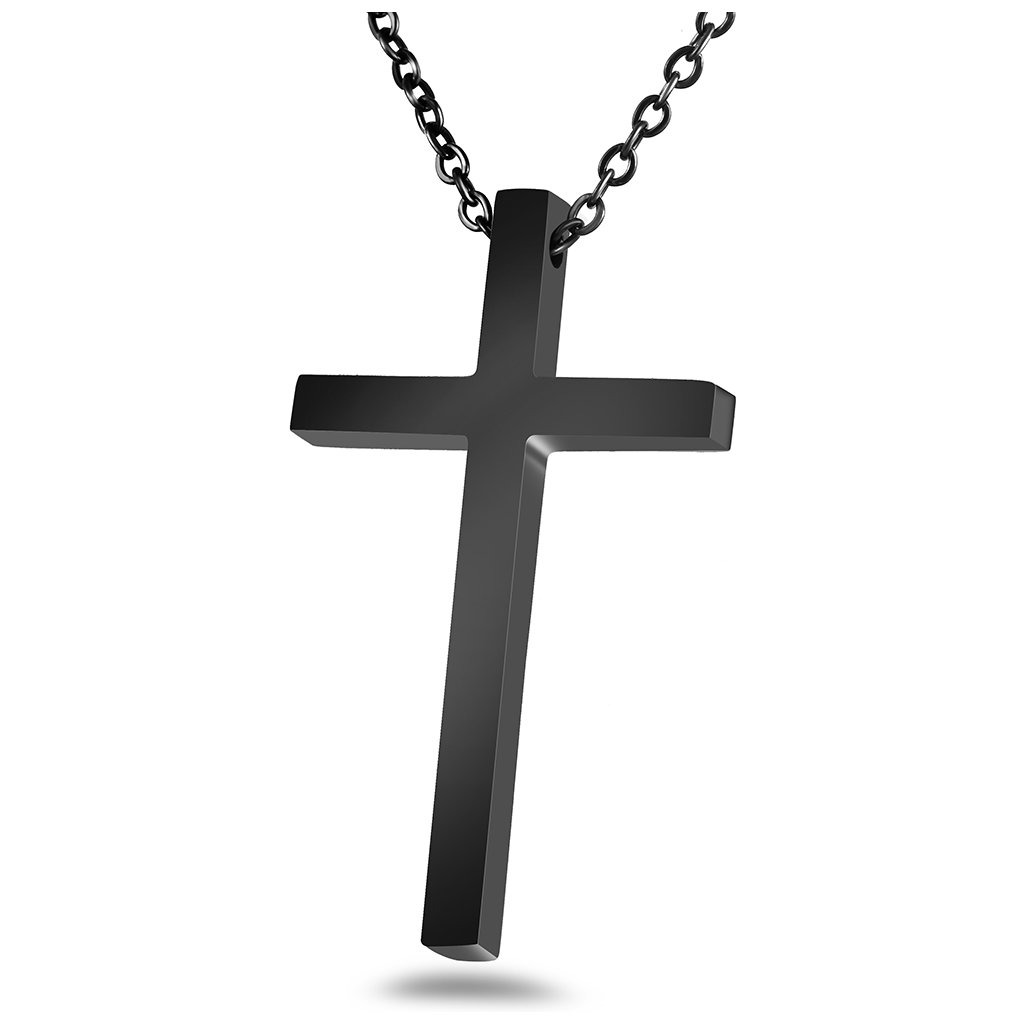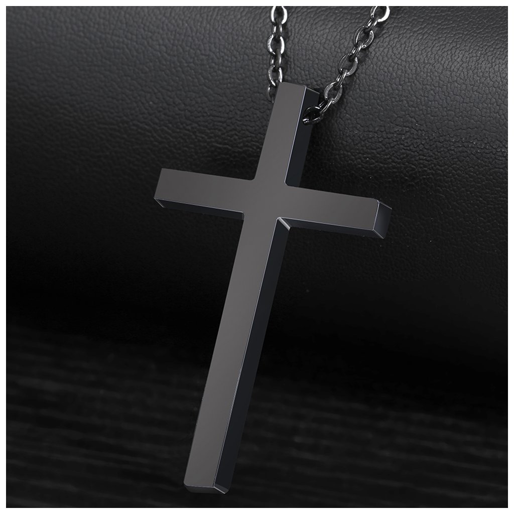 Řetízek s přívěskem - křížek Big, černá ocel