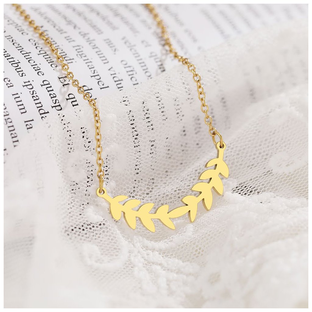 Řetízek s přívěskem - lístečky Laurus, zlatá ocel
