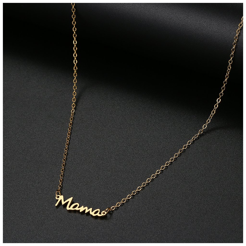 Řetízek s přívěskem - nápis mama, zlatá ocel