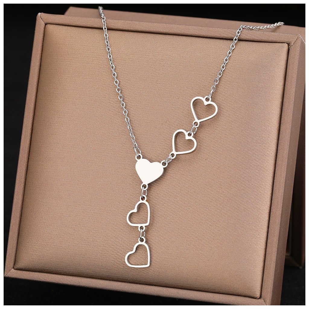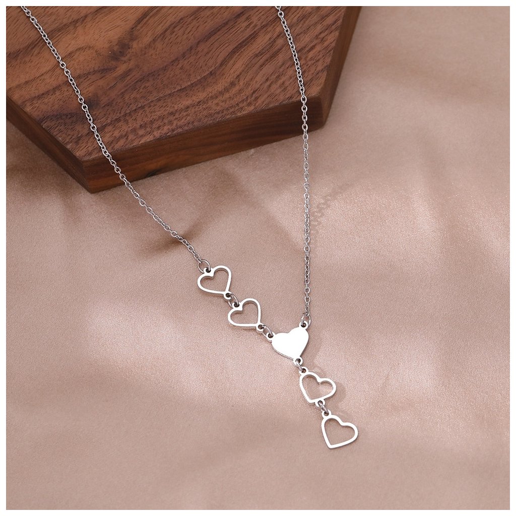Řetízek s přívěskem - pět srdíček, stříbrná ocel