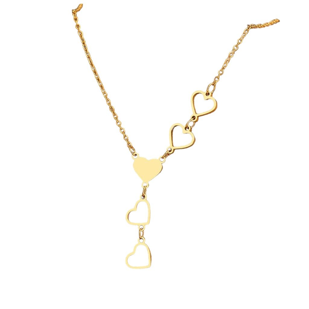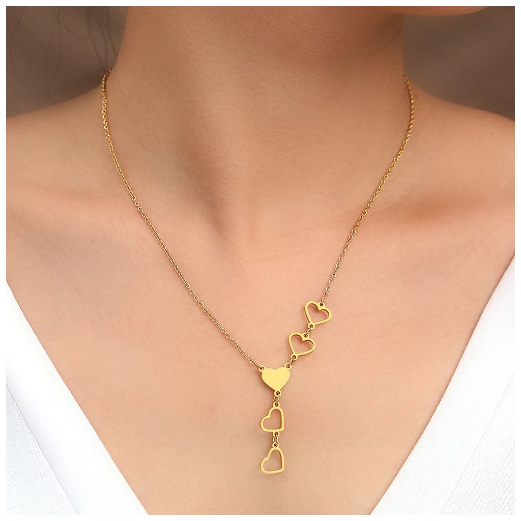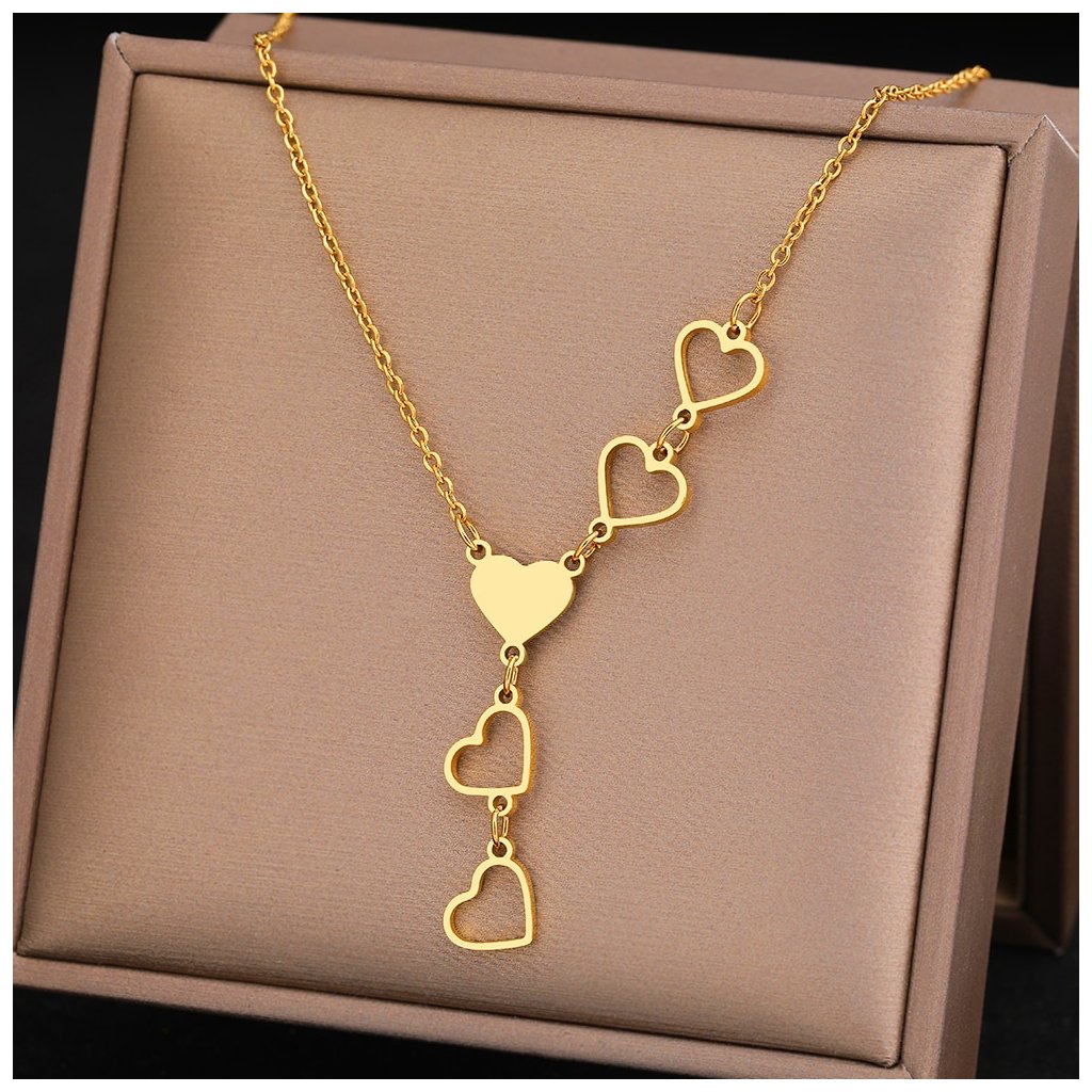 Řetízek s přívěskem - pět srdíček, zlatá ocel