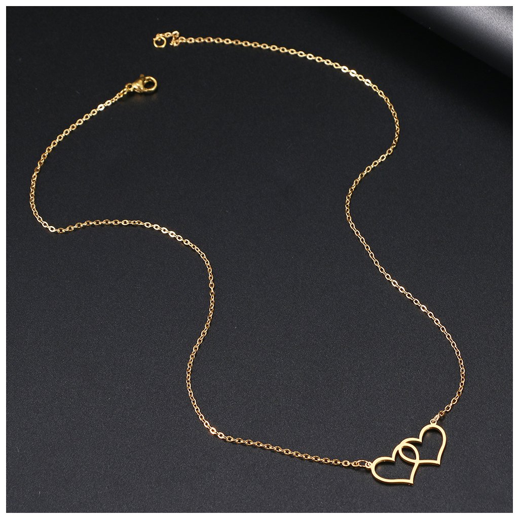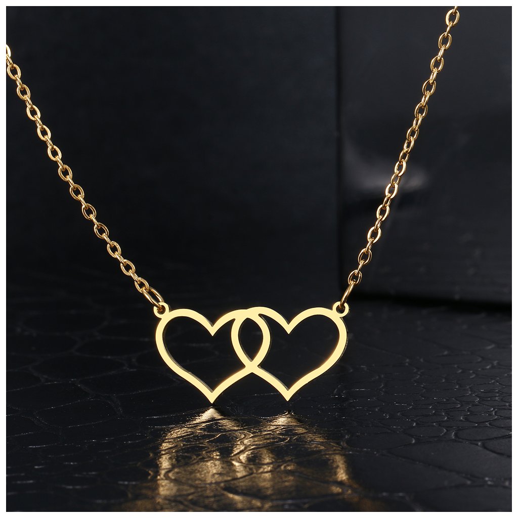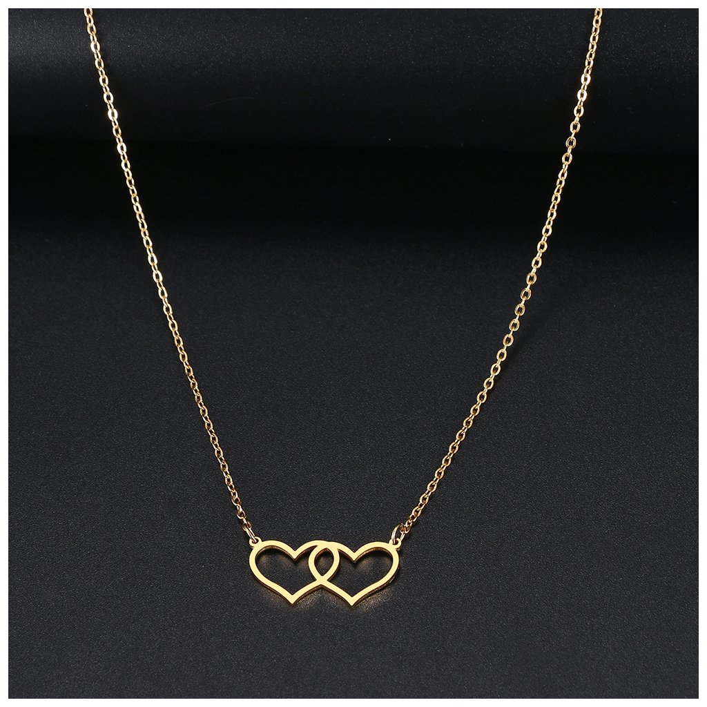 Řetízek s přívěskem - propojená srdce, zlatá ocel