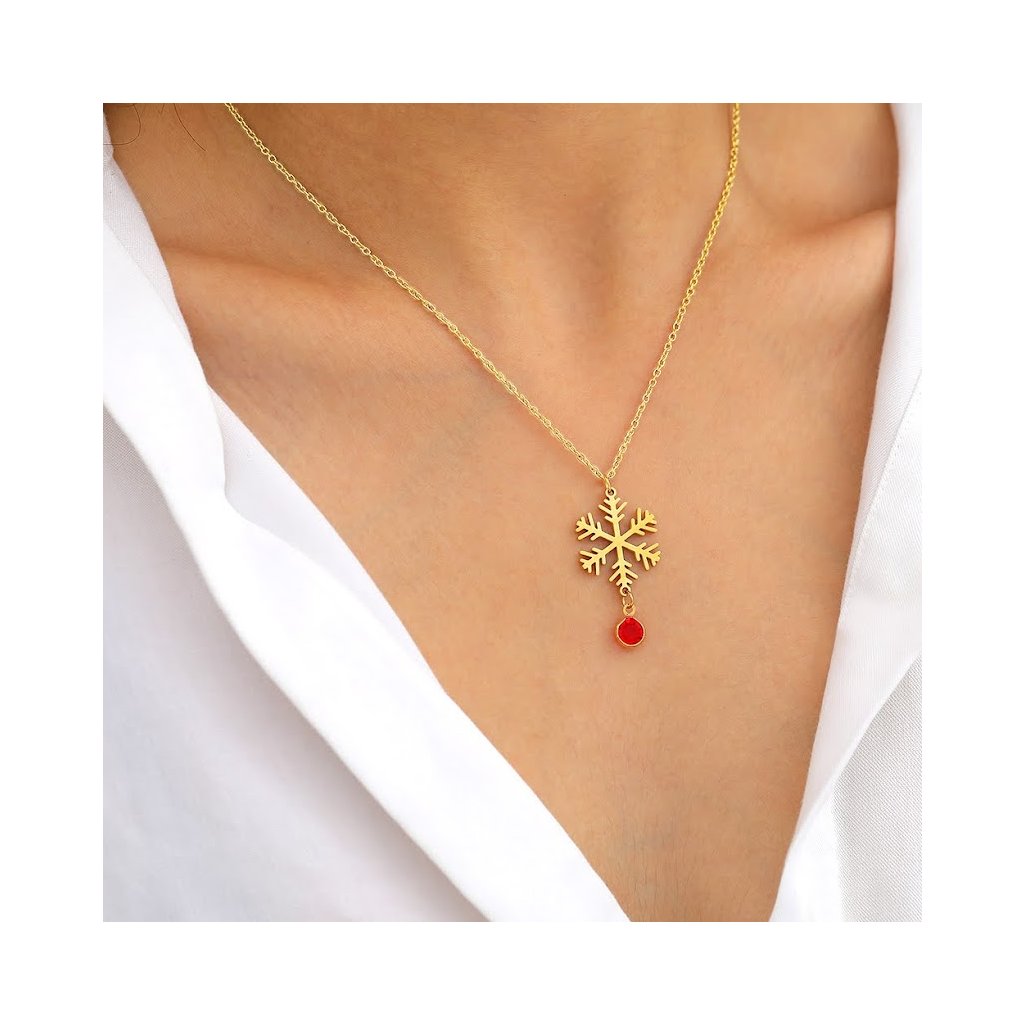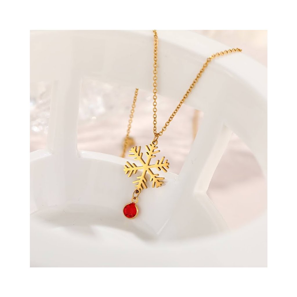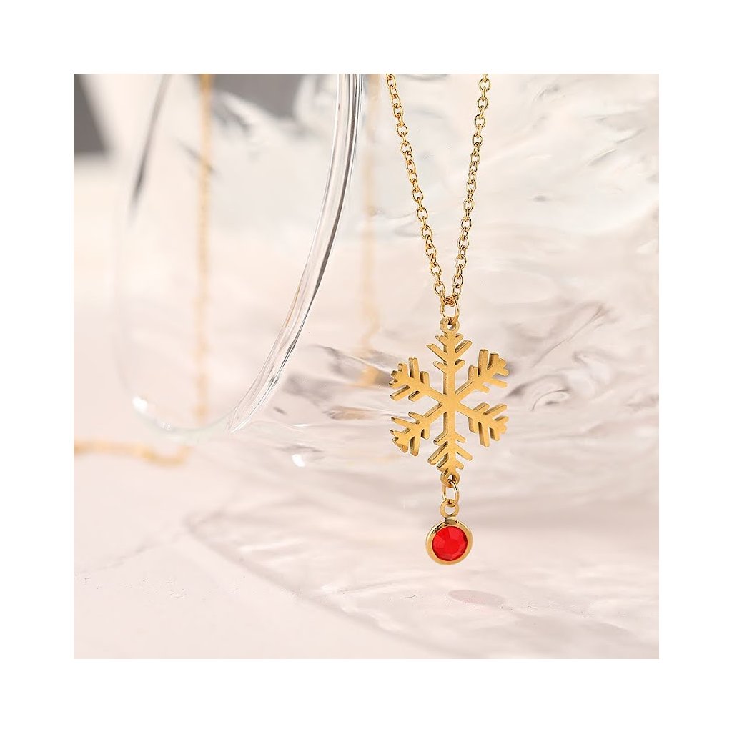 Řetízek s přívěskem - sněhová vločka s červeným kamínkem, zlatá ocel
