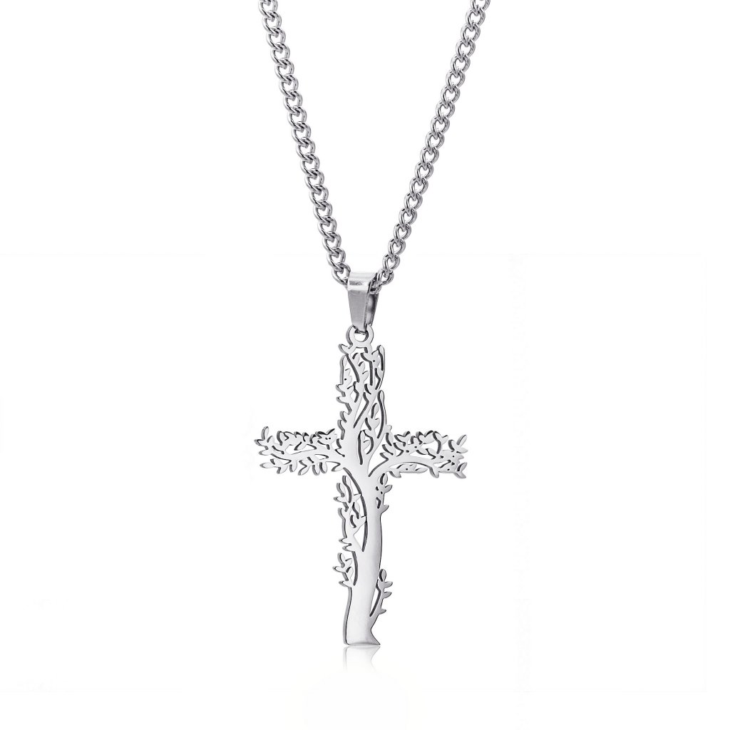 Řetízek s přívěskem - strom života ve tvaru kříže, stříbrná ocel