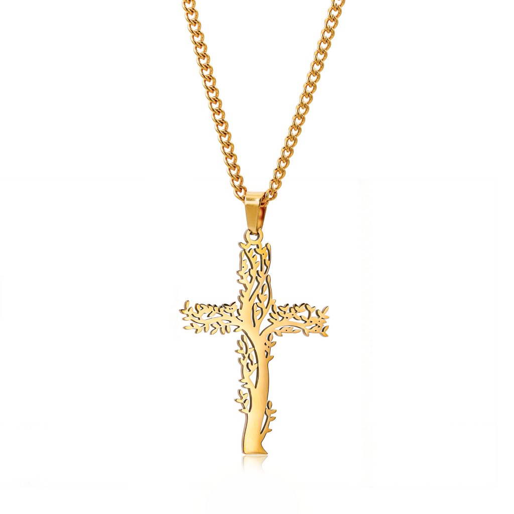 Řetízek s přívěskem - strom života ve tvaru kříže, zlatá ocel