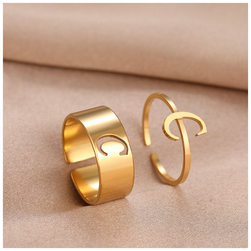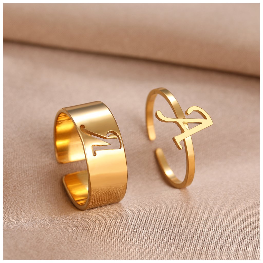 Sada dvou prstenů s nastavitelnou velikostí - písmeno abecedy, zlatá ocel