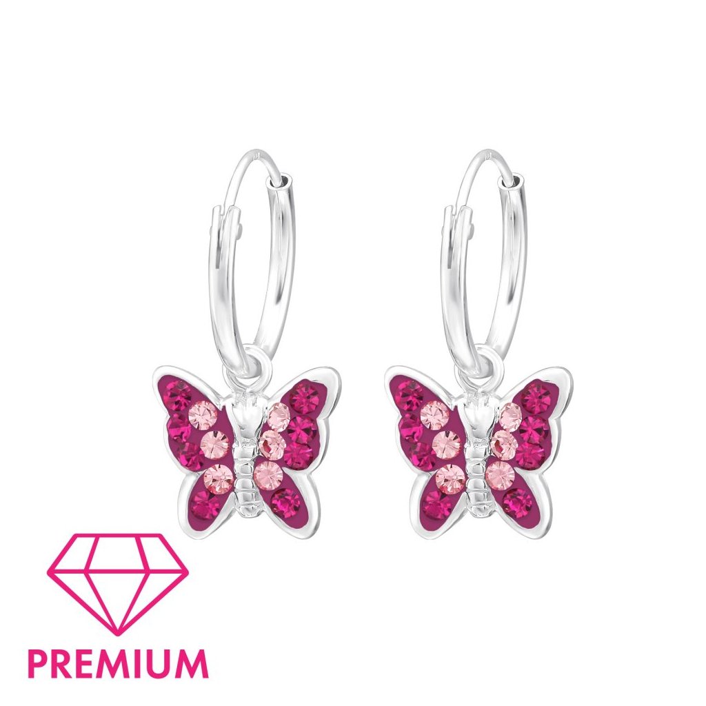 Stříbrné dětské náušnice Motýl s duo růžovými krystaly – jemnost a elegance pro vaše nejmenší