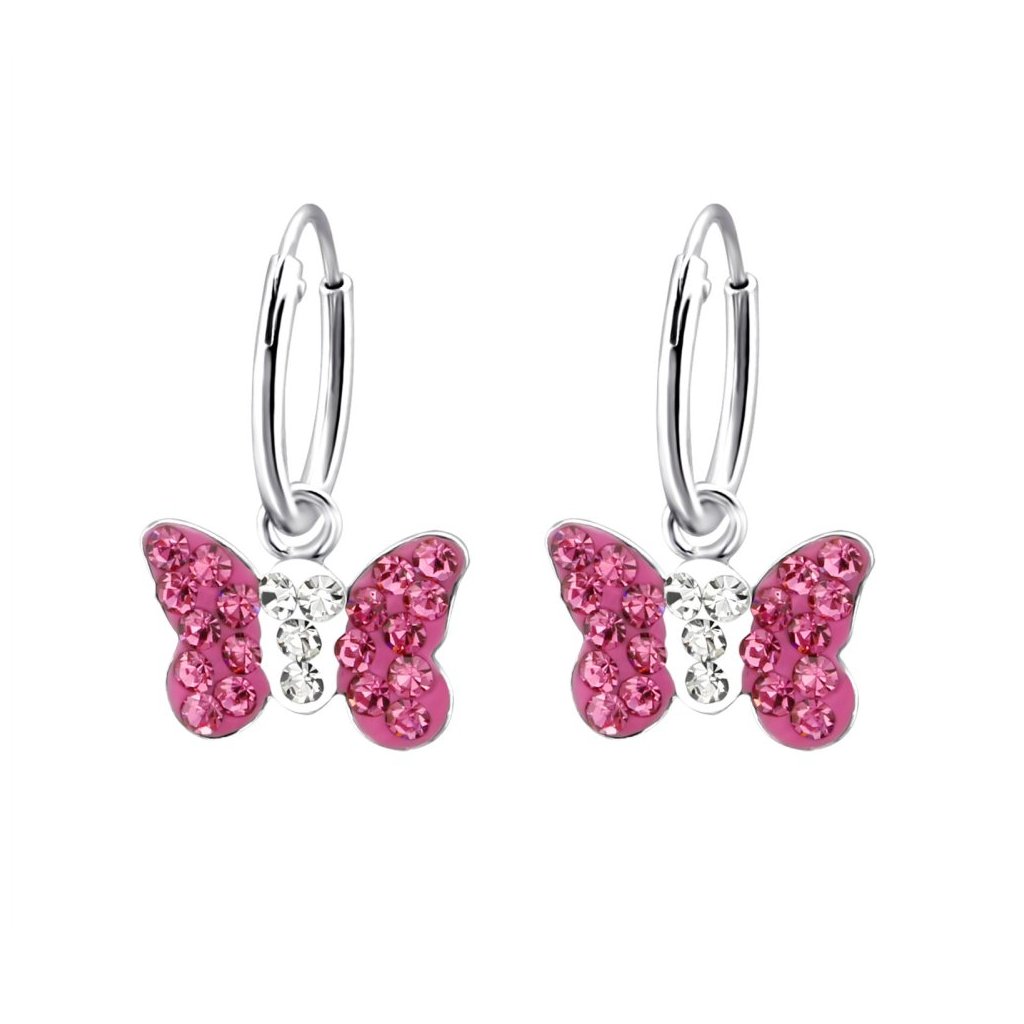 Motýlí pohlazení – dětské stříbrné náušnice s růžovými a čirými krystaly