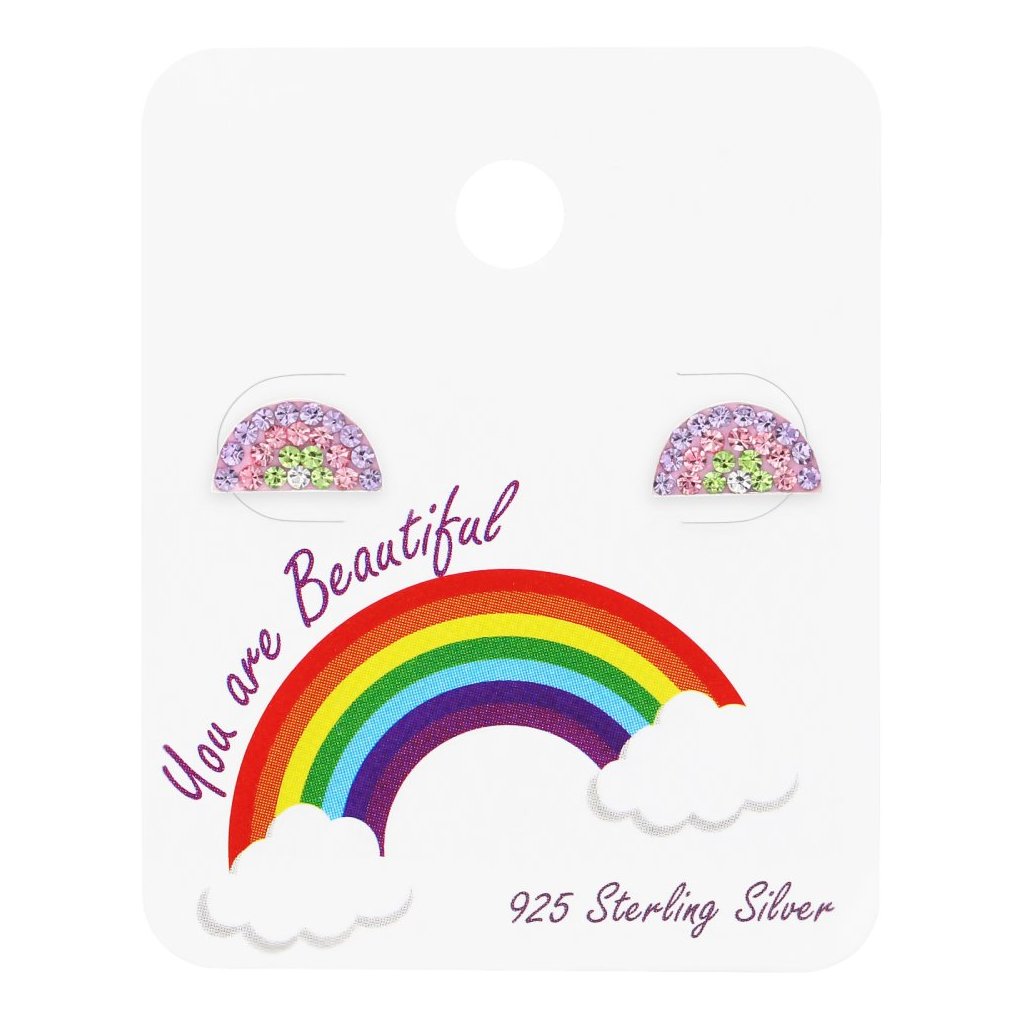 Tyto kouzelné dětské náušnice ve tvaru půlkruhu rozzáří každé ouško něžným duhovým třpytem. Jsou vyrobeny ze stříbra a zdobeny jemnými krystalky v pastelových barvách, které připomínají zářivou duhu po dešti. Jejich hravý, ale elegantní vzhled potěší každou malou milovnici barev a třpytu. Díky pohodlnému zapínání a lehkému provedení jsou náušnice ideální pro každodenní nošení i slavnostní příležitosti. Skvělý dárek pro malé princezny, které si rády ozdobí ouška něčím výjimečným a zároveň pohodlným.