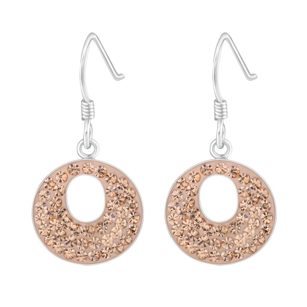 Stříbrné kulaté náušnice s oranžovými Krystaly