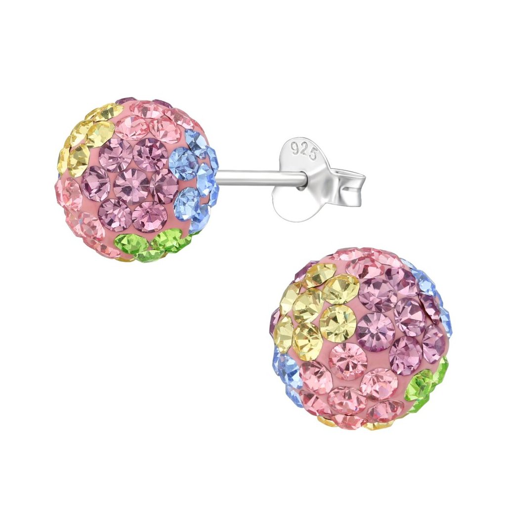 Stříbrné náušnice Ball - duhový mix