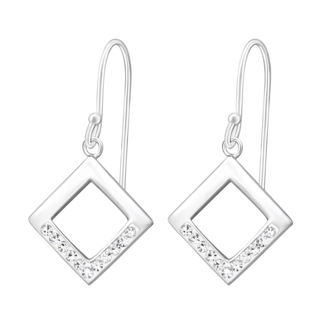 Stříbrné náušnice Čtverec s krystaly – elegance v jednoduchosti