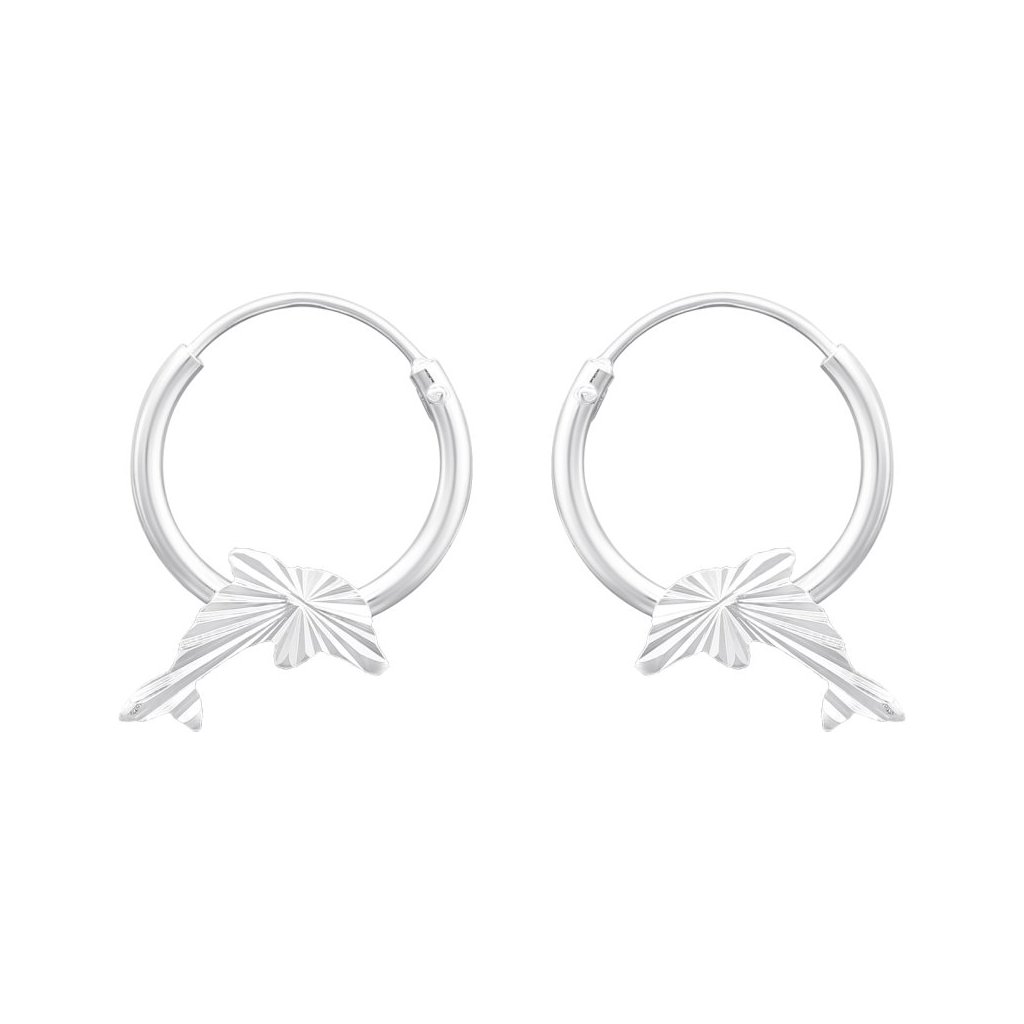 Ozdoba ve tvaru dvou delfínků měří 10 × 6 mm a dodává náušnicím veselý a atraktivní nádech. Zapínání je řešeno kruhovými háčky o velikosti 1,2 × 12 mm, což zaručuje pohodlné nošení.