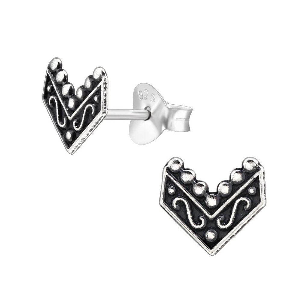 Stříbrné náušnice do tvaru V jsou moderním a stylovým doplňkem pro každou ženu. Vyrobené ze stříbra s úpravou oxidace a E-coat, náušnice mají jedinečný design, který přidává na eleganci. S rozměry 7,3 × 6,7 mm a praktickým zapínáním typu puzeta jsou pohodlné na nošení. Tyto náušnice jsou skvělou volbou pro každodenní použití i speciální příležitosti, dodávající vašemu vzhledu sofistikovaný a trendy nádech!