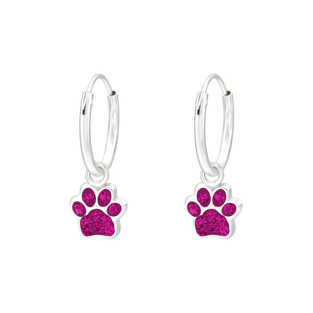 Stříbrné náušnice fuchsiové Tlapky