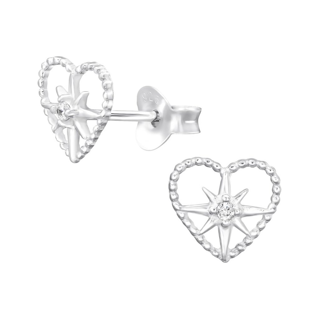 Stříbrné náušnice Hvězda v srdci se irkony (CZ)