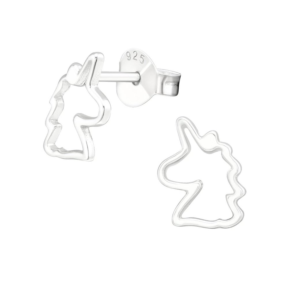 Stříbrné náušnice Jednorožec