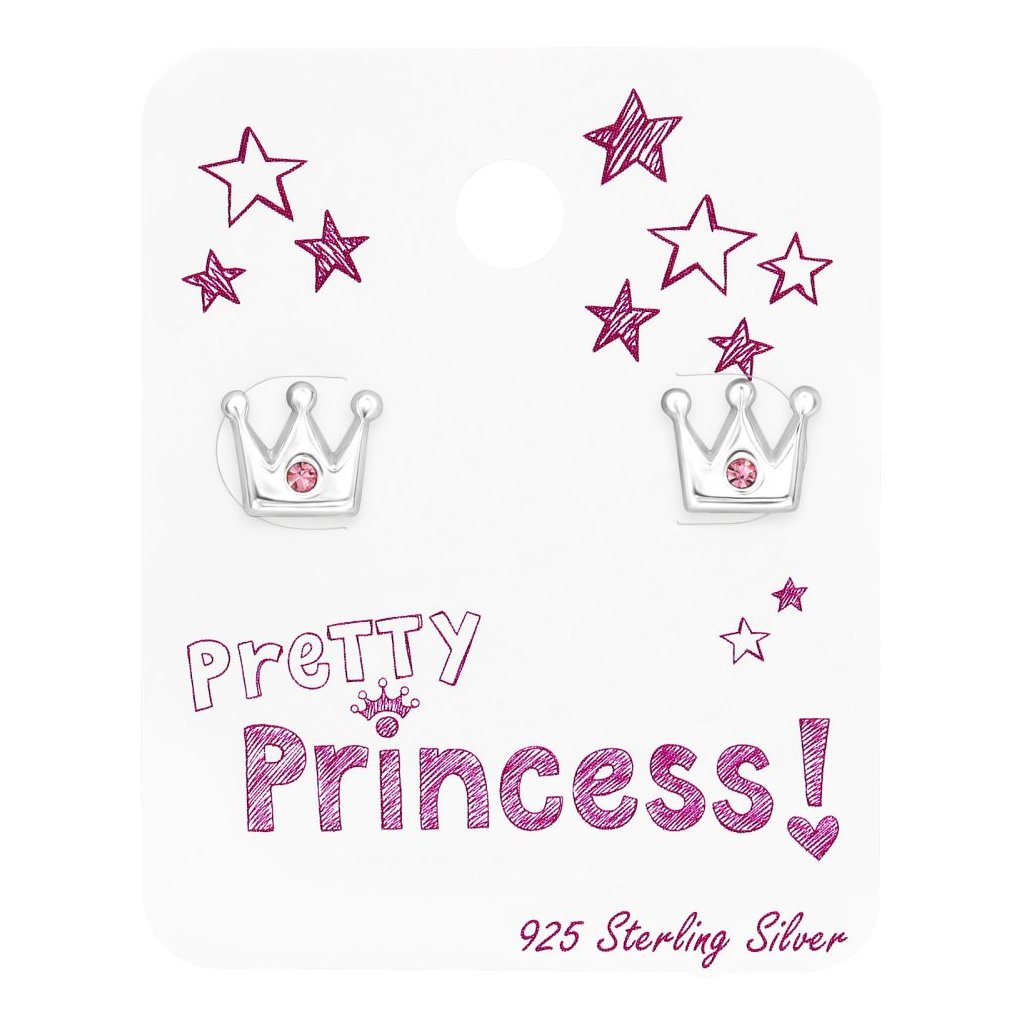 Dětské stříbrné náušnice Koruna s krystaly – královský šarm pro malé princezny