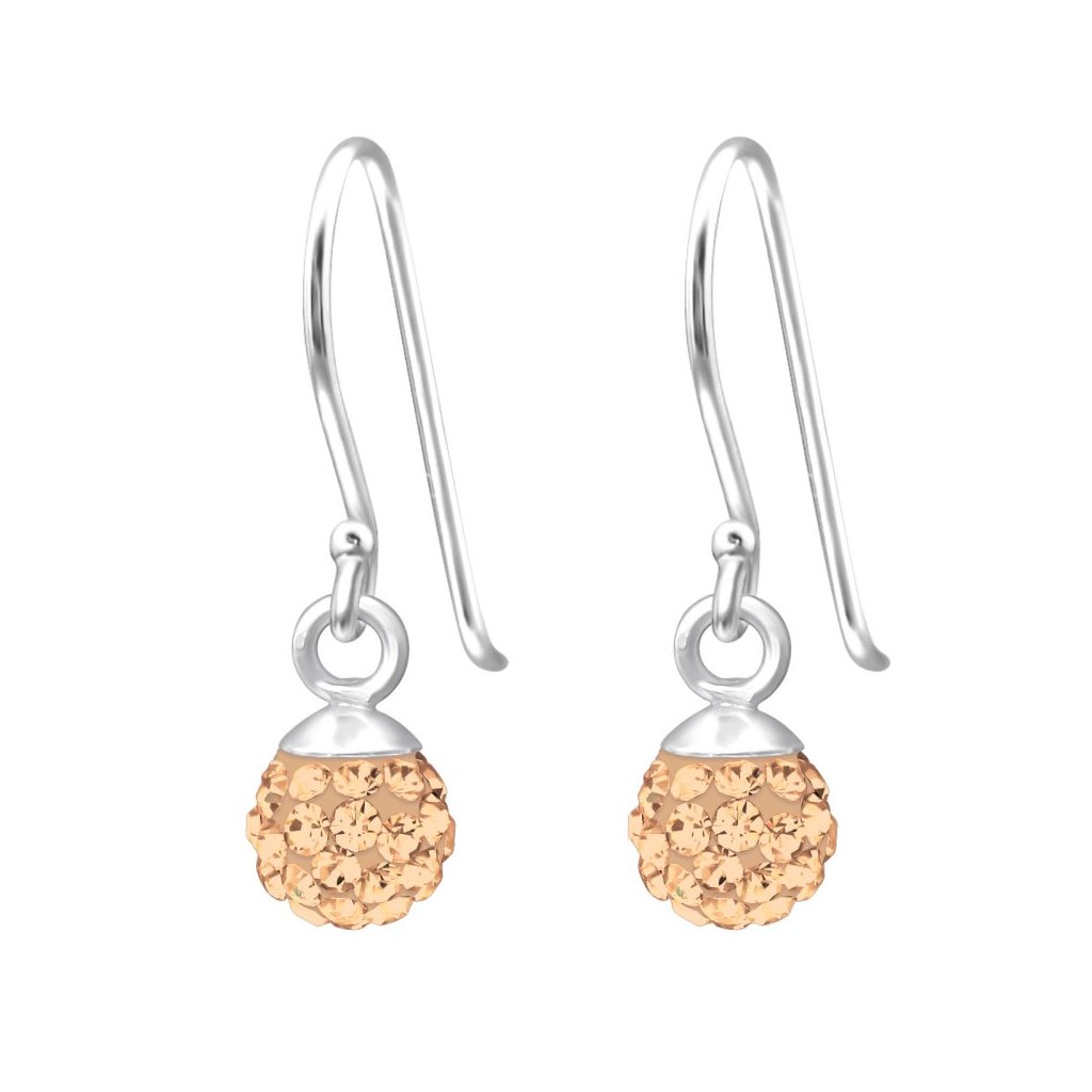 Stříbrné náušnice Krystalová koule oranžová