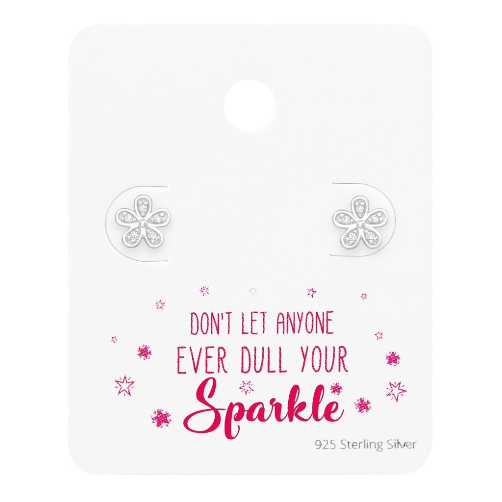 Stříbrné náušnice ve tvaru květiny, určené pro ženy, jsou potažené E-coatem a zdobeny čirými kubickými zirkony (CZ). S rozměry 6 × 6 mm a zapínáním na puzetu představují jemný a romantický doplněk, který přidá eleganci a šarm každému outfitu.