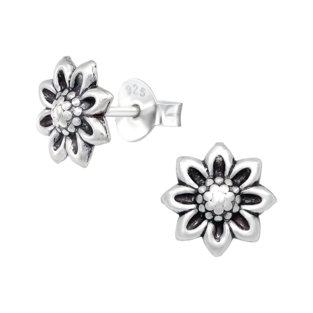 Stříbrné náušnice kvetoucí Květina