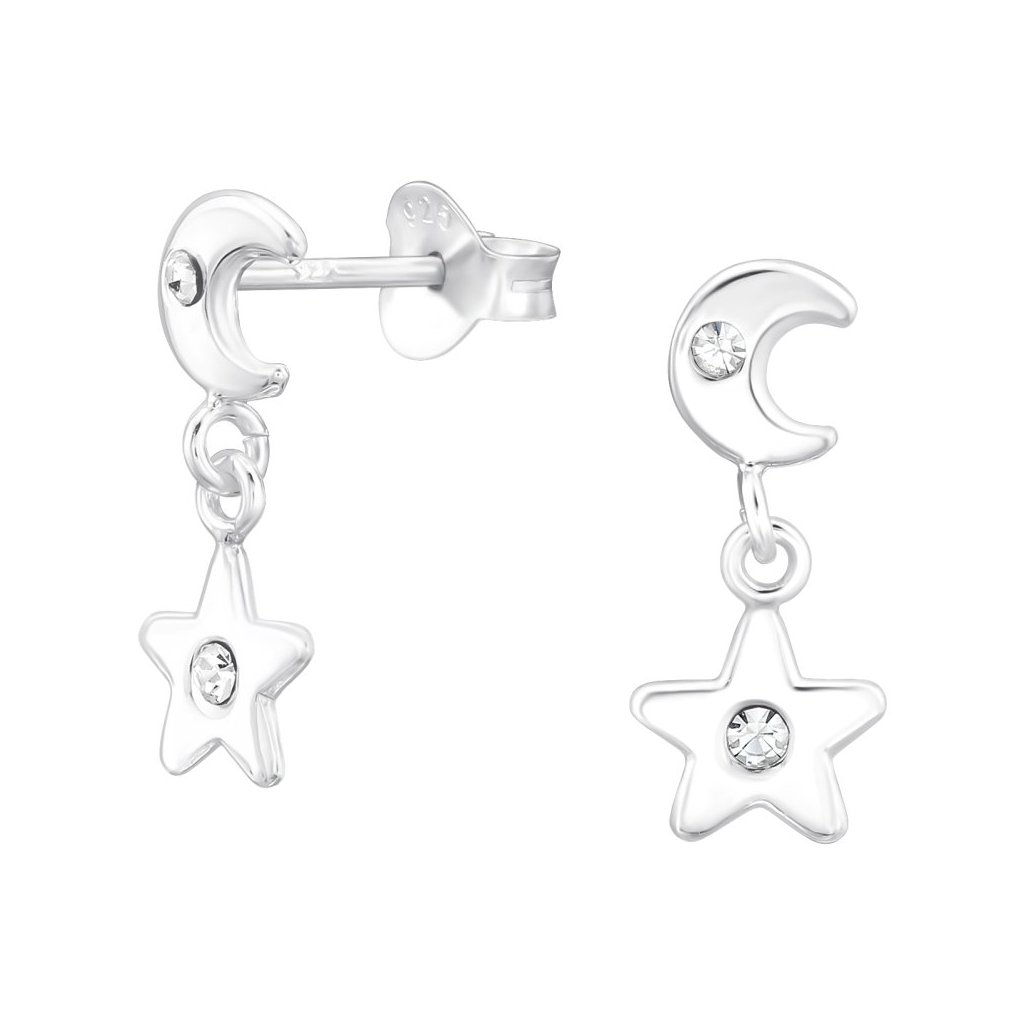 Stříbrné náušnice Měsíc a hvězda