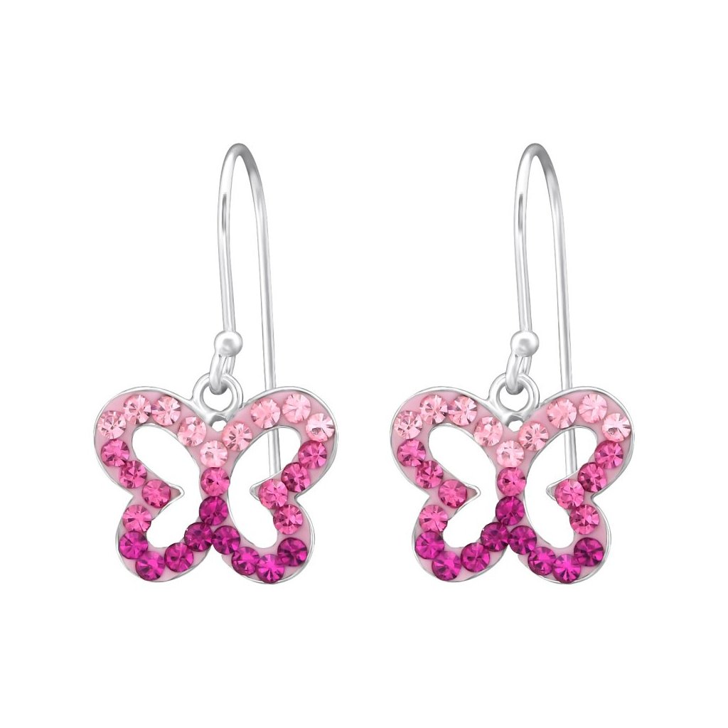 Stříbrné náušnice Motý s růžovými Krystaly