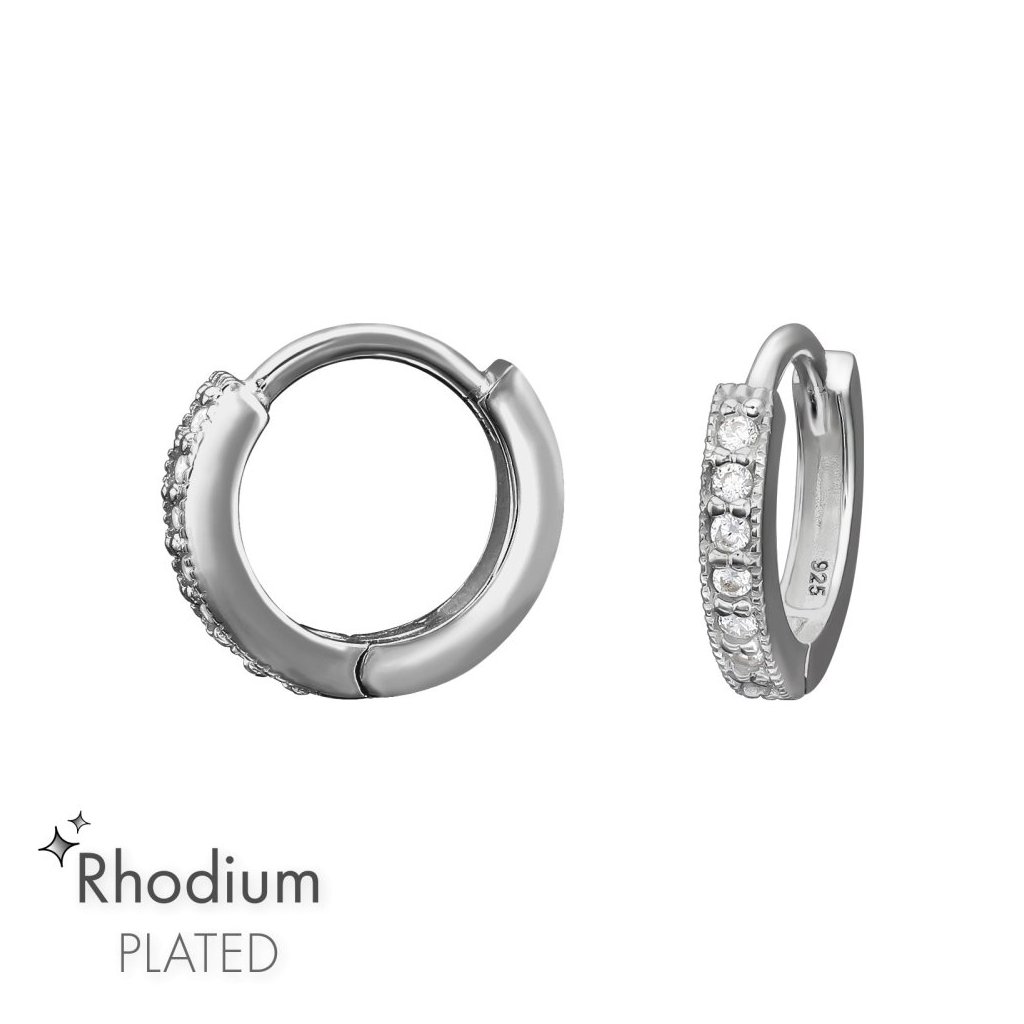 Stříbrné náušnice obruč s kubickými zirkoniemi (CZ) jsou elegantním a třpytivým doplňkem pro každou ženu. Vyrobené ze stříbra s rhodiovou úpravou, zajišťují vysoký lesk a odolnost vůči poškrábání. Náušnice mají rozměry 2,5 × 12 mm a jsou navrženy v kruhovém stylu, což dodává jejich designu jemnost a šarm. Tento kousek je ideální pro každodenní nošení i speciální příležitosti a skvěle doplní jakýkoli outfit, přičemž přináší nádech elegance a sofistikovanosti.