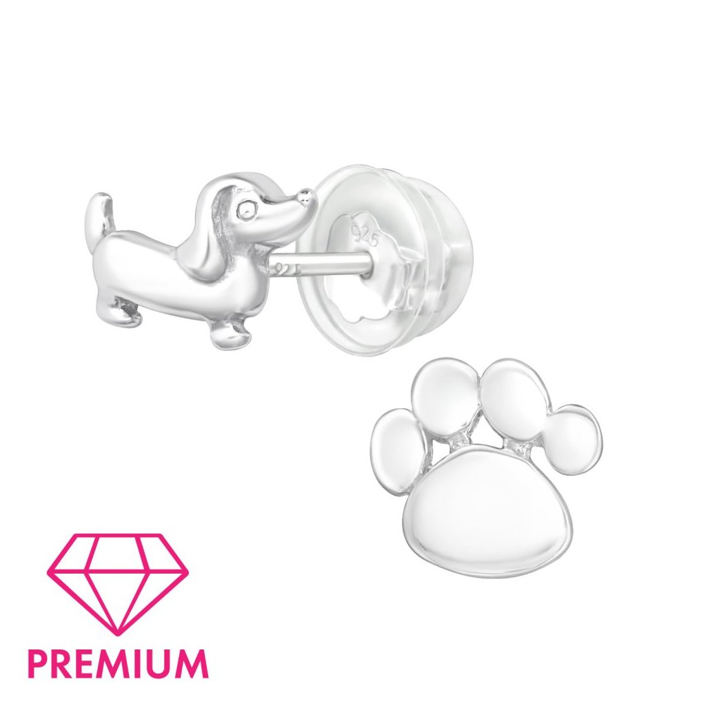 Stříbrné náusnice Pes a tlapka