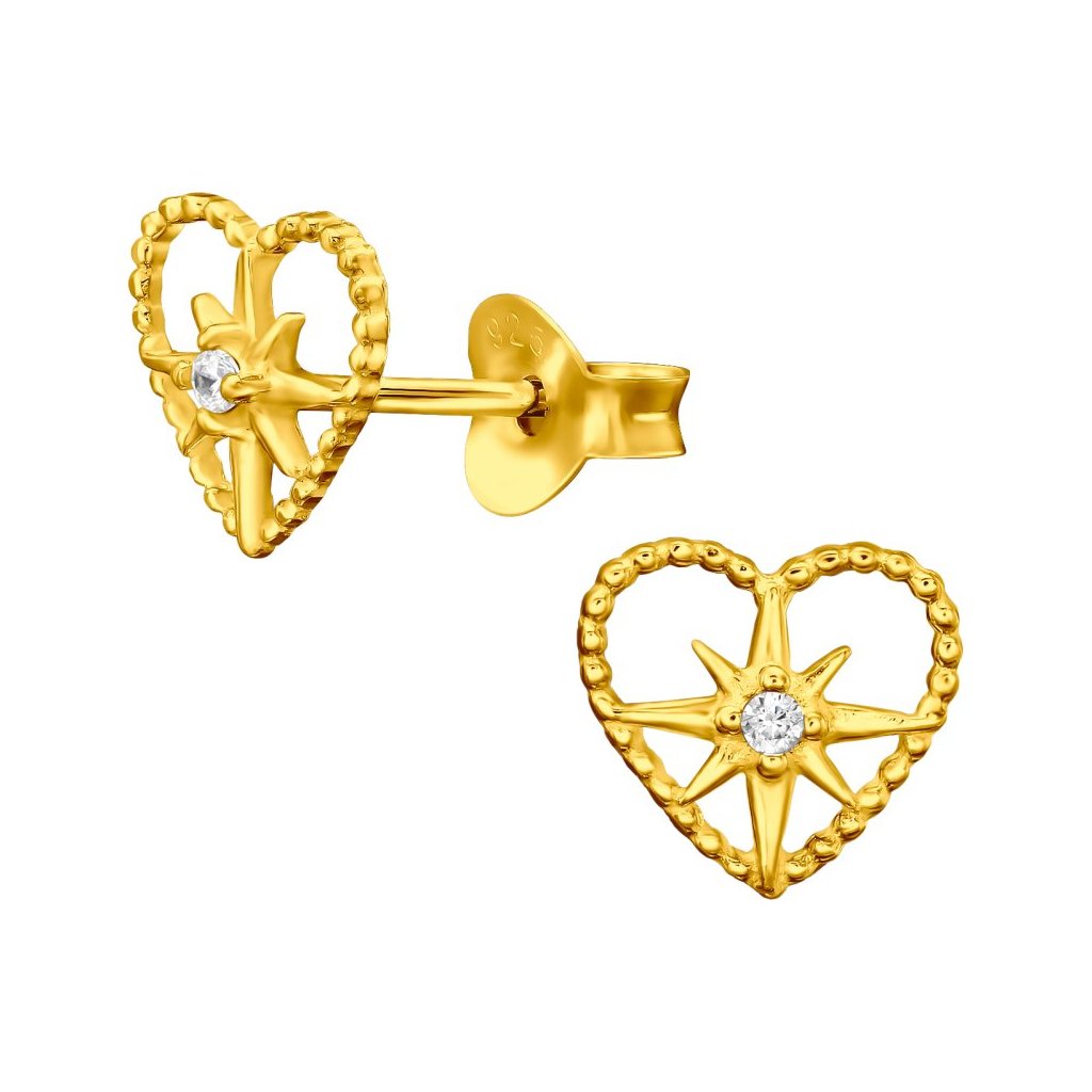 Stříbrné náušnice pozlacené Hvězda v srdci se irkony (CZ)