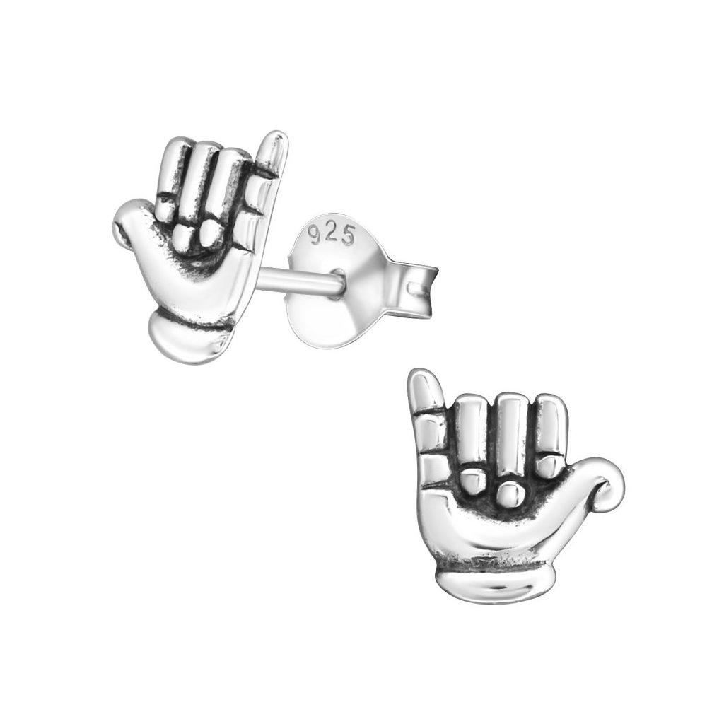 Stříbrné náušnice s gestem „shaka“ – stylová volba s výrazem