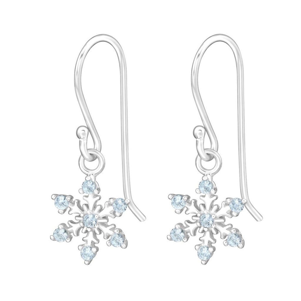 Stříbrné náušnice Sněhová vločka se zirkony (CZ)