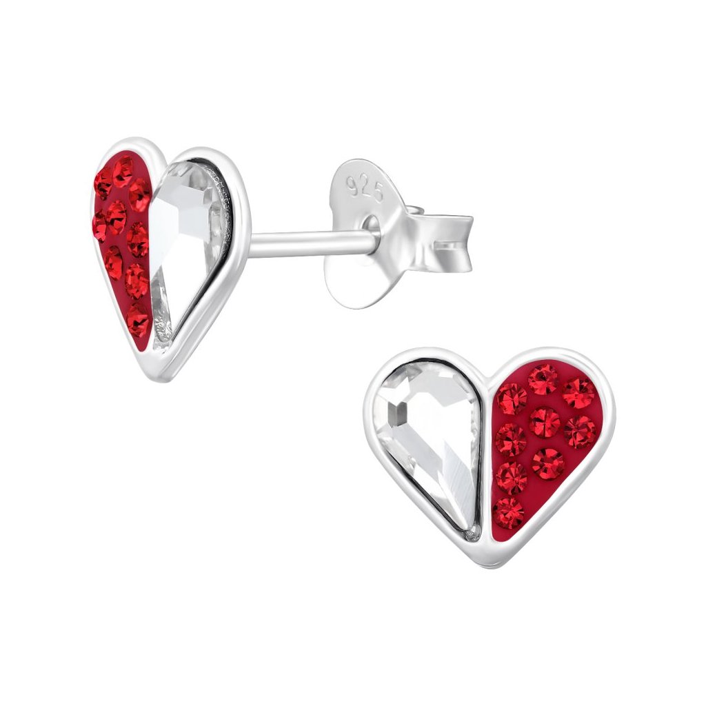 Stříbrné náušnice Srdce s krystaly – symbol lásky ve dvou tónech