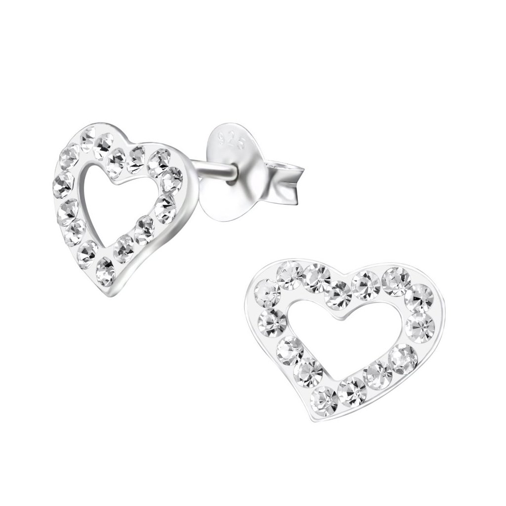 Dětské stříbrné náušnice Srdíčka s krystaly – něžný třpyt pro malé parádnice