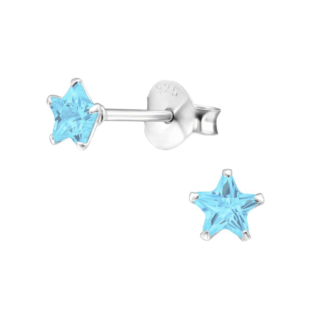 Stříbrné náušnice Star se světle modrými zirkony (CZ)